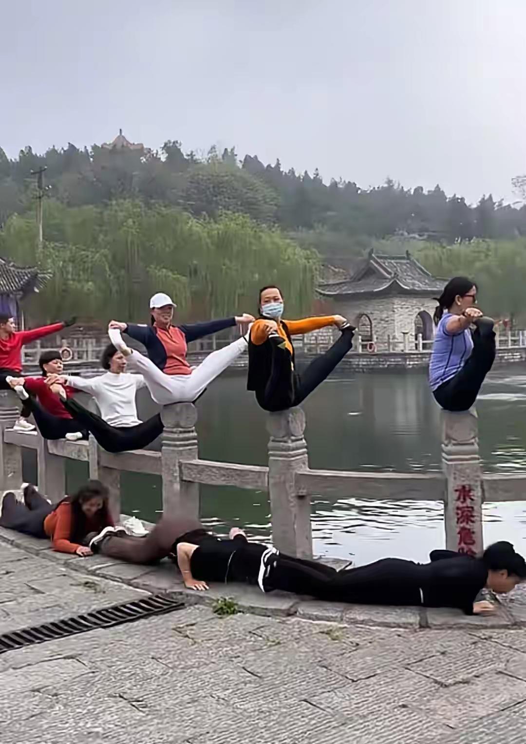 护栏当瑜伽垫?百泉景区这波操作,直接把全网看傻了!就这样公共环境叉开腿,好看吗?