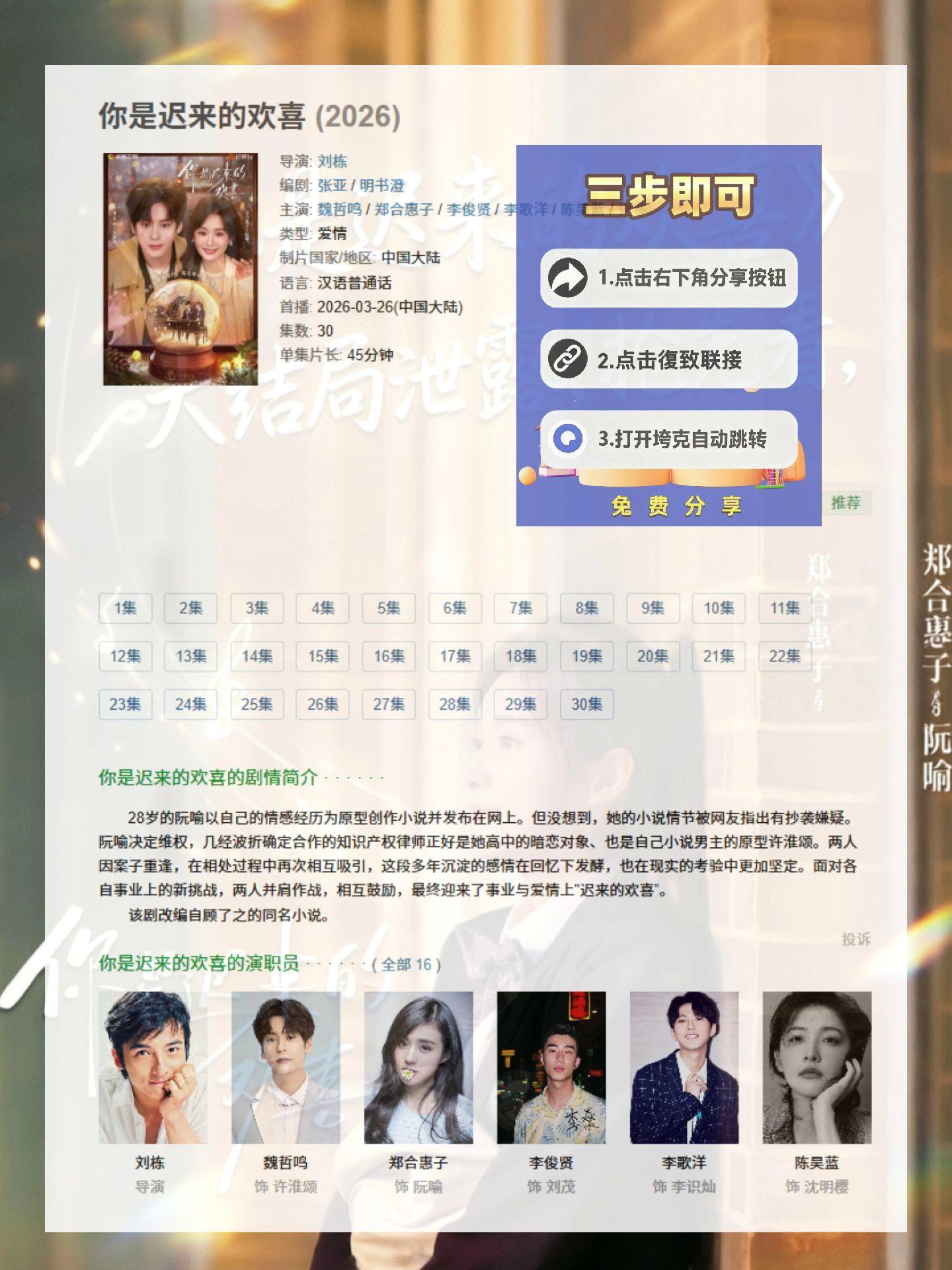动作盻稳澉璧潆多好《你是迟来的欢喜》1-30 全集,好久没这么投入追剧了,沉浸式观看越看越上头越好看 魏哲鸣 郑合惠子 李歌洋 你是迟来的欢喜开播 你是迟来的欢喜追剧日历 你是迟来的欢喜好看吗 你是迟来的欢喜在哪看完整版