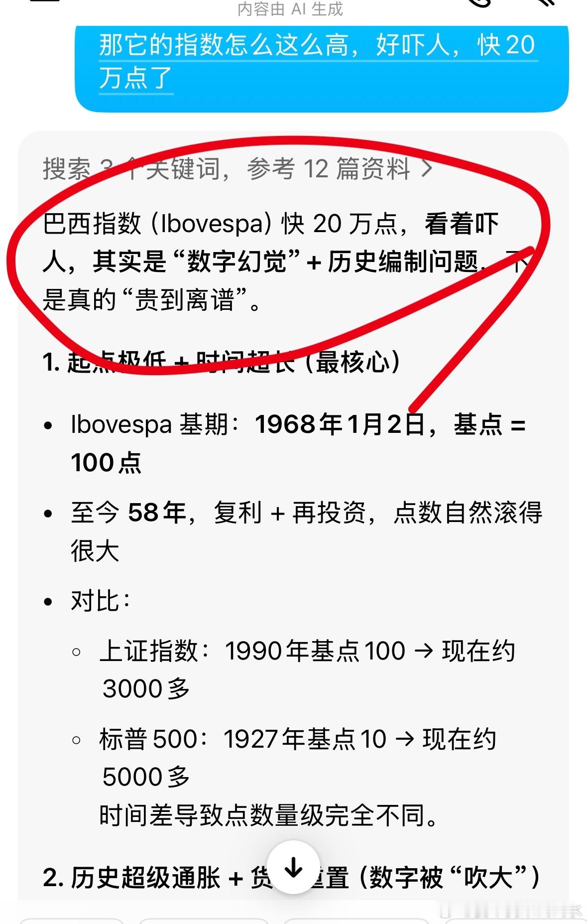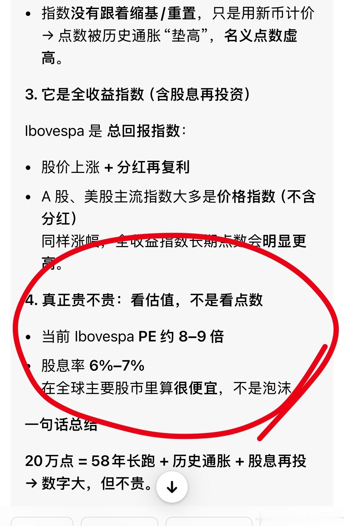 你们的疑虑我再次搜了下,巴西指数(Ibovespa)快 20 万点,看着吓人,其实是“数字幻觉”+ 历史编制问题,不是真的“贵到离谱”。