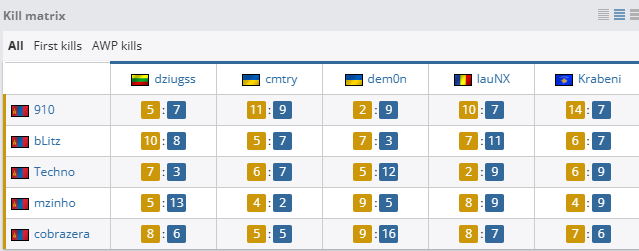 上半场TMLZ选择CT方开局,手枪局Techno拿下三杀,FUT次局选择强起失败,TMLZ连拿两分。然而,dziugss第三局瞬秒mzinho,TMLZ防守被直接突破,FUT成功翻盘。随后,FUT选择A点提速,cmtry大狙亮眼发挥拿下双杀,FUT扳平比分的同时将TMLZ送入ECO,FUT连拿三分反超比分。关键时刻,TMLZ选择非常规开局,中路前顶拼枪,FUT猝不及防,TMLZ再次将比分追平。然而次局FUT再次选择快攻成功,比分来到4-3,面对枪械优势的FUT,cobrazera强起M4A1前顶中路拿下双杀带队翻盘,战局陷入焦灼。cobrazera枪法爆发一波三杀打开局面,FUT进入ECO,ECO局dem0n沙鹰三杀依旧无法抹除枪械劣势,TMLZ领先至6-4。FUT试图继续提速被TMLZ道具劝阻,被拿着大狙的bLitz拿下双杀。上半场最后一局,cobrazera甩狙拿下四杀,TMLZ以8-4的比分结束上半场。