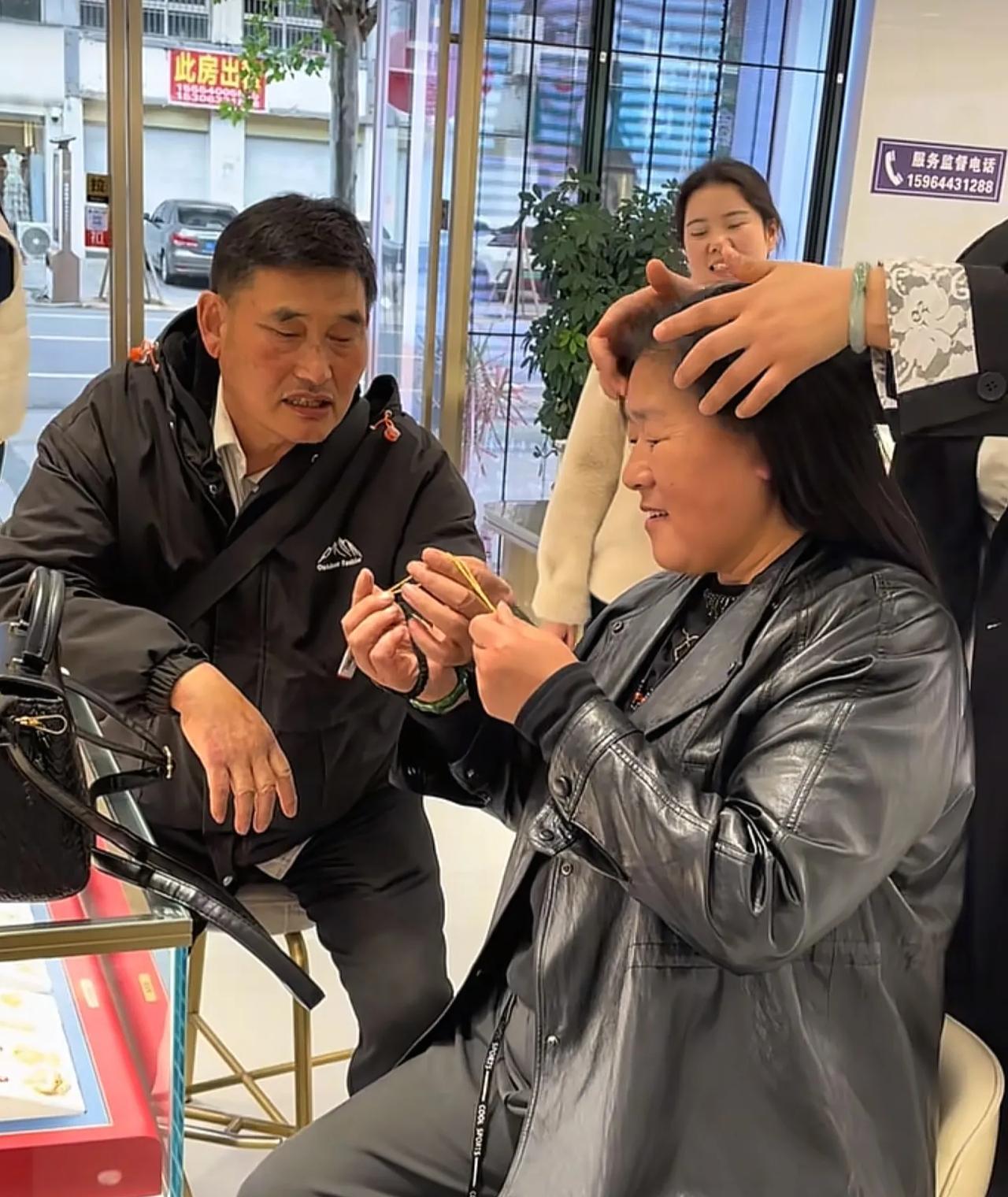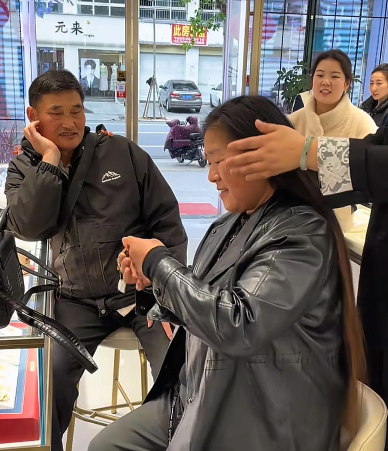 他直接把金项链戴到老婆脖子上,动作熟练得像给自家麦苗浇水。