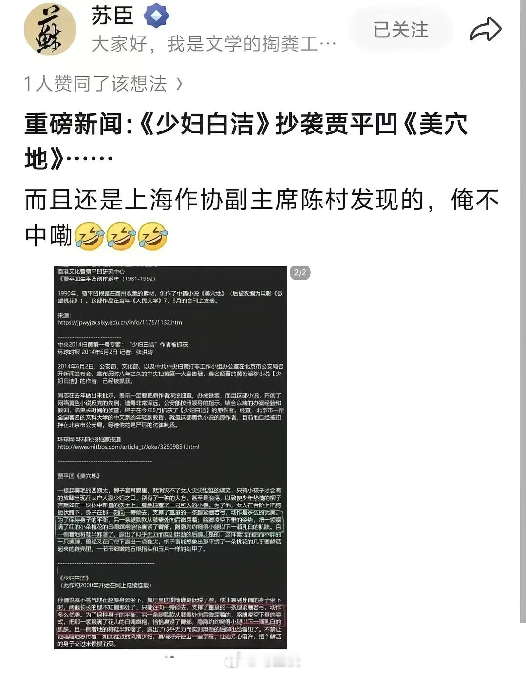 人类对贾平凹的开发也不足千分之一…贾浅浅又一篇论文被指抄袭