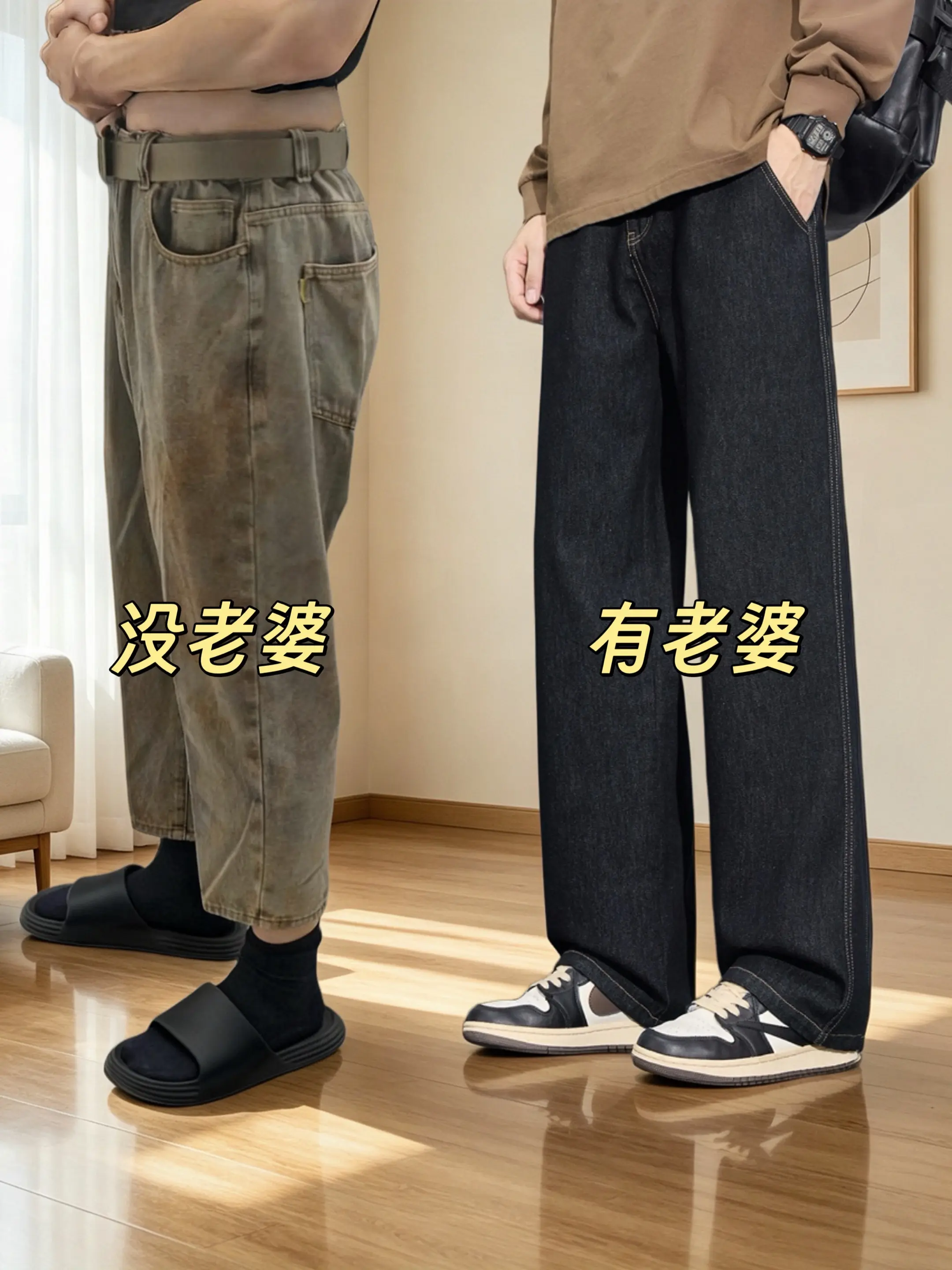 宽松直筒牛仔裤 男生的裤子应该怎么选 男生裤子推荐 直筒裤 显瘦显高显腿长裤子