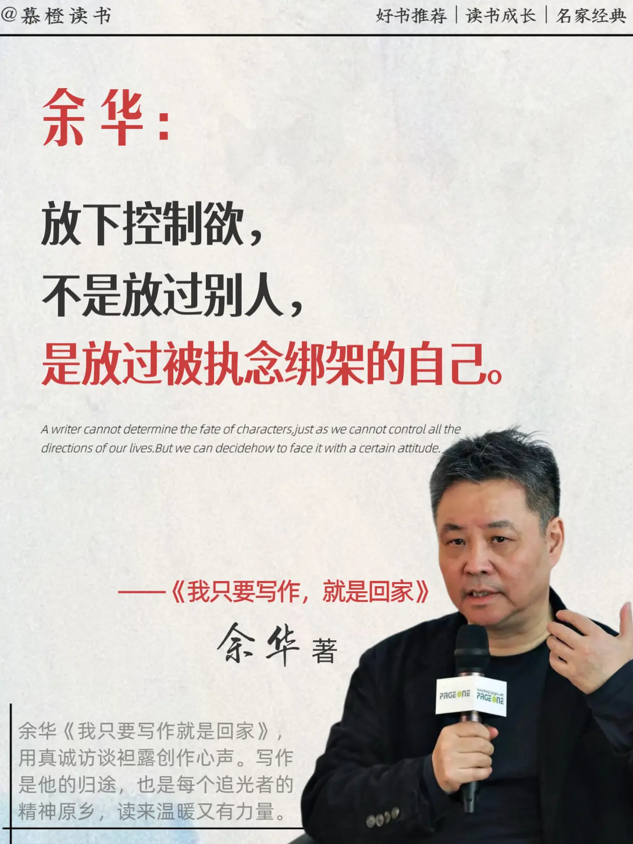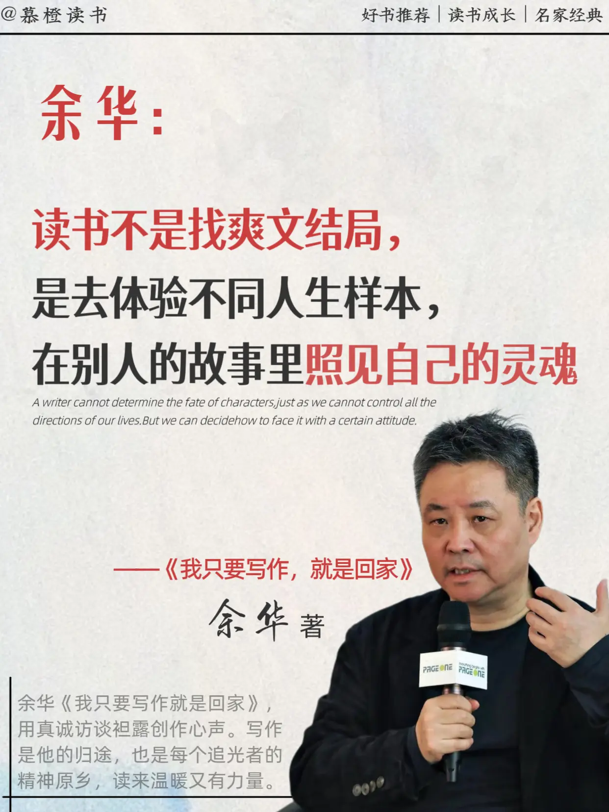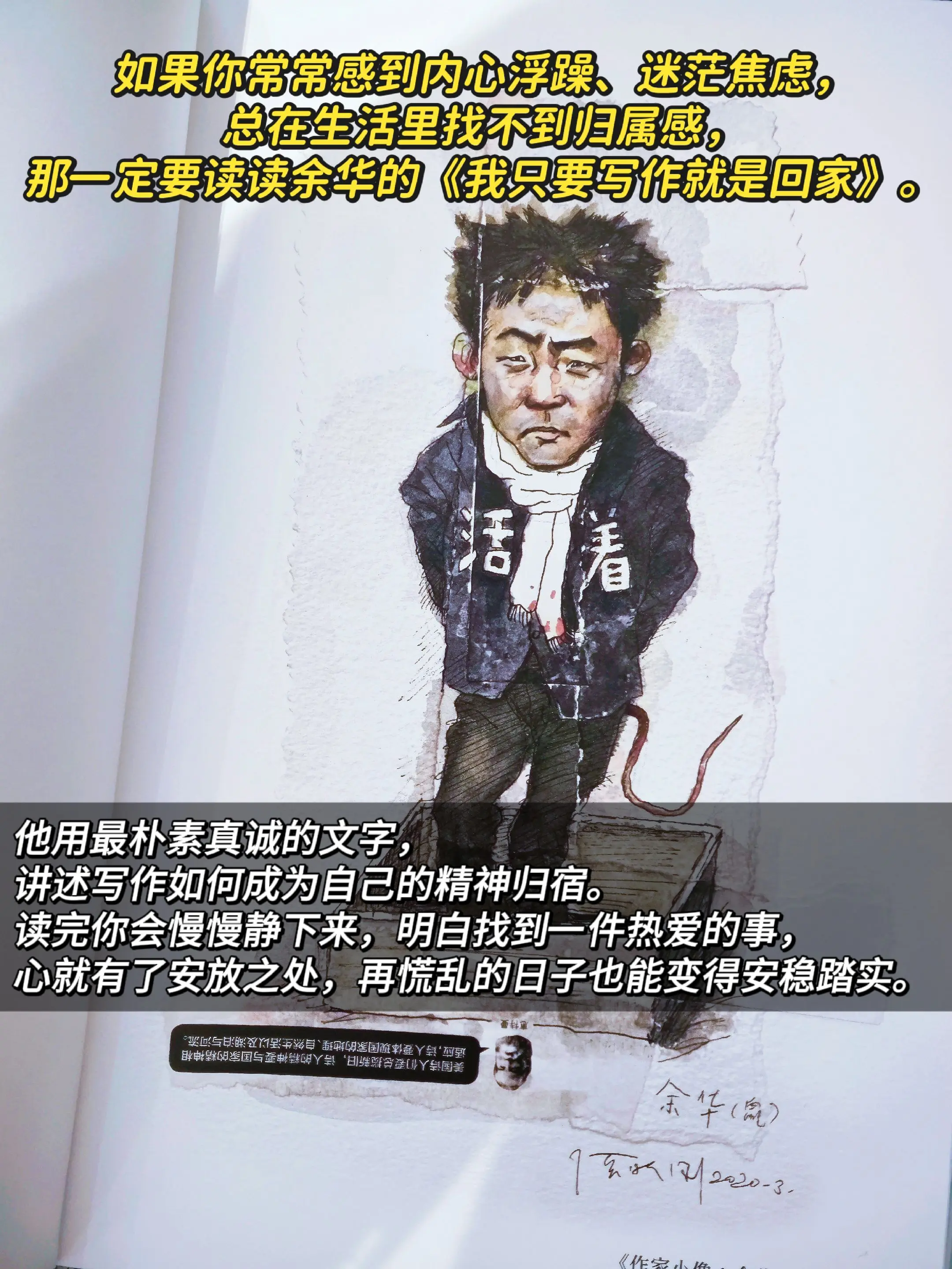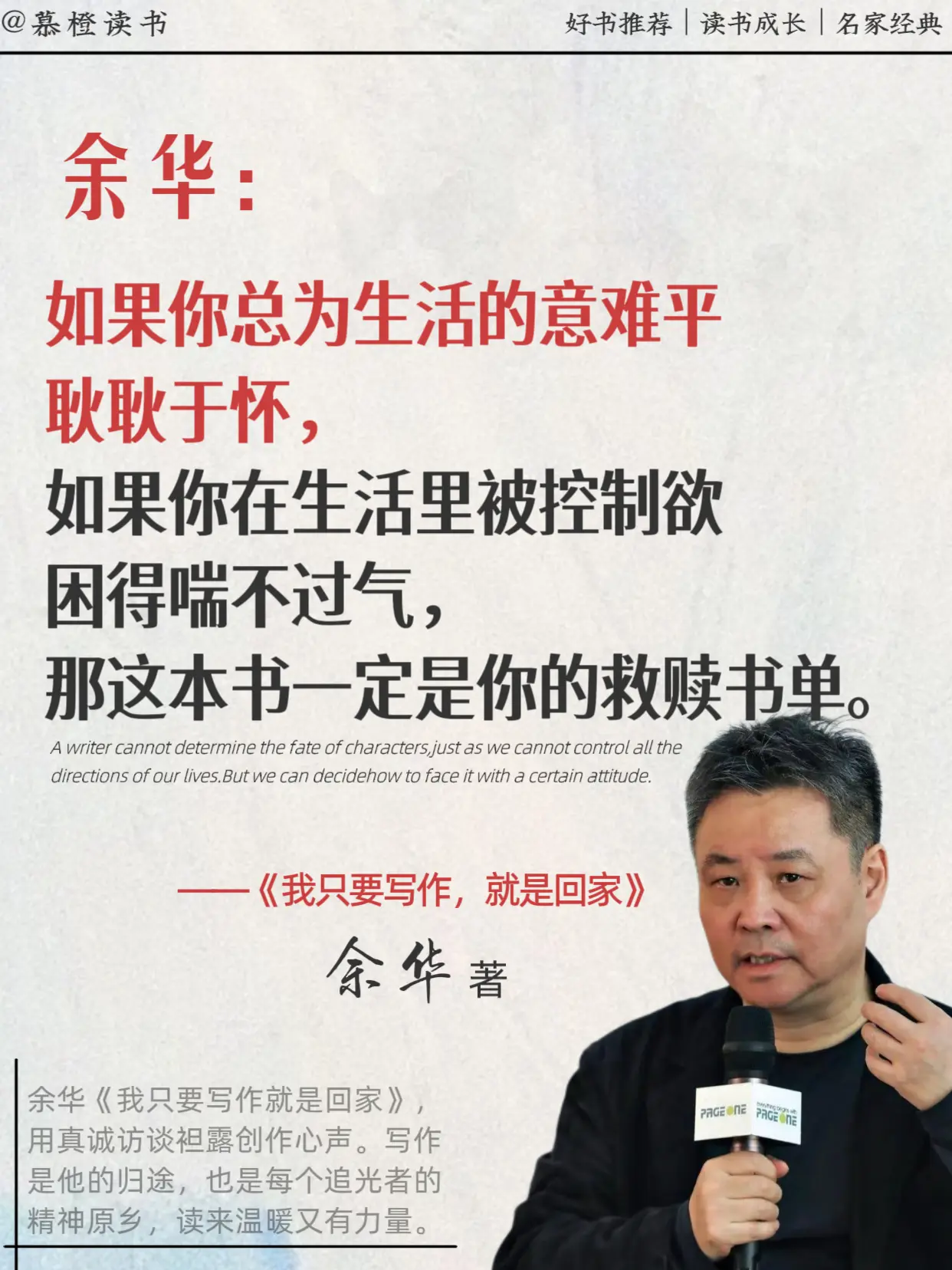 余华老师新书治愈了我最近所有的焦虑!!如果你最近总是焦虑、烦躁、内耗,感觉心飘着,没有归属感,一定要看看余华这本《我只要写作就是回家》。他用最朴素的话,说出最治愈的道理:人这一生,总得有一件事,能让你沉下心、安住神。读完会慢慢静下来,不再被外界裹挟,找到属于自己的精神归宿。