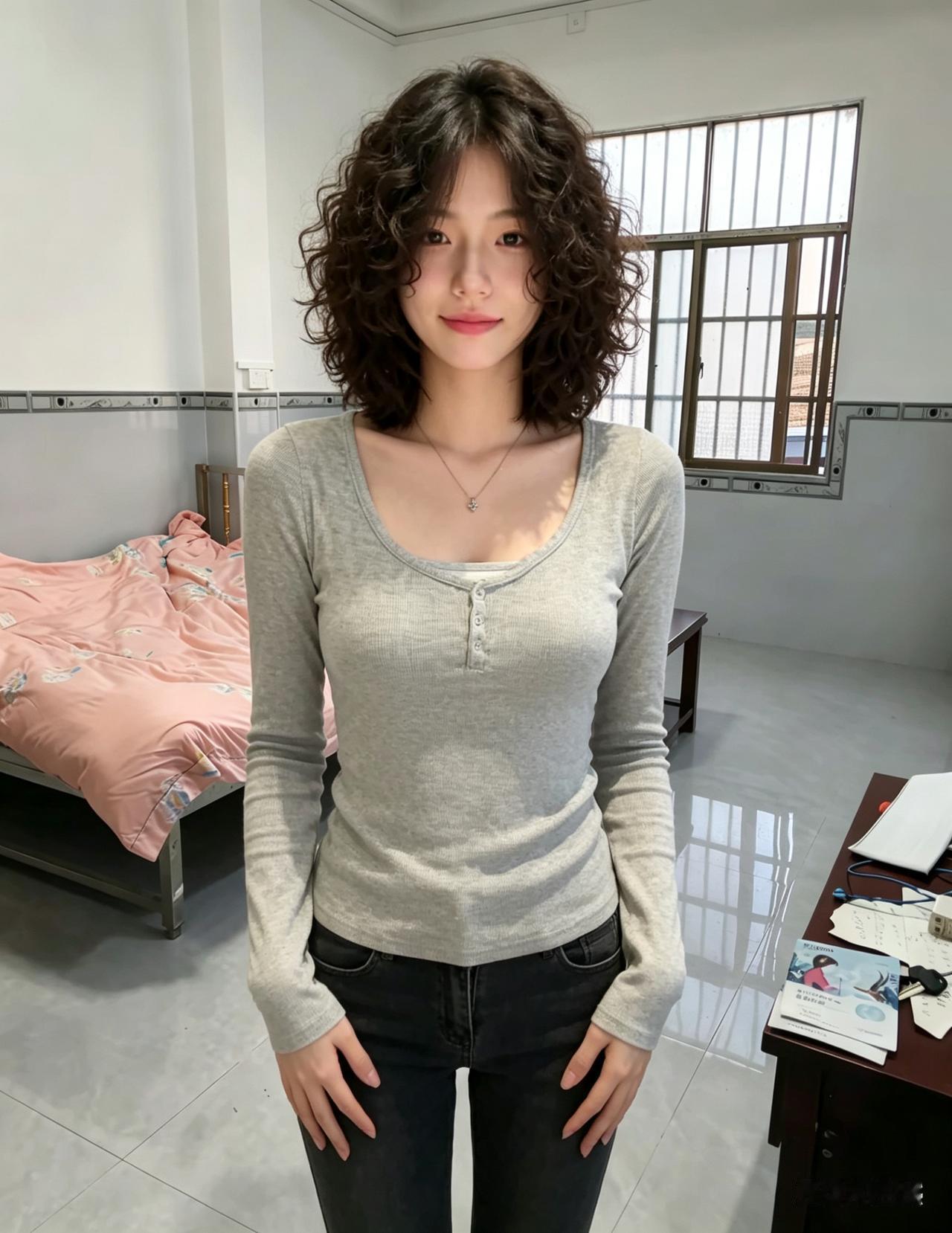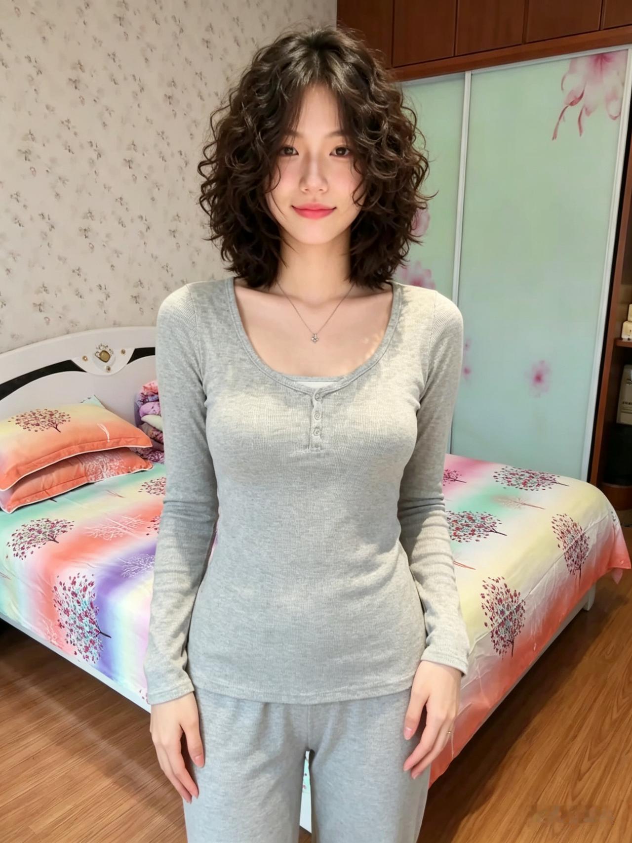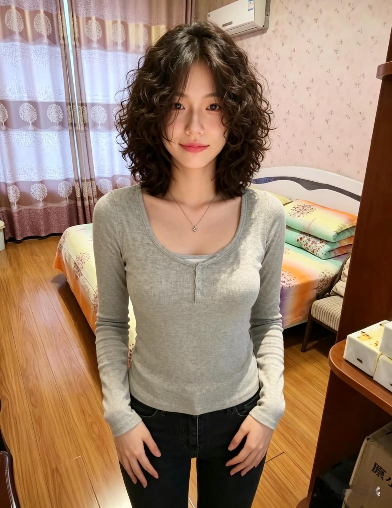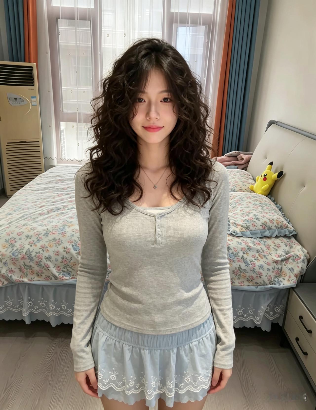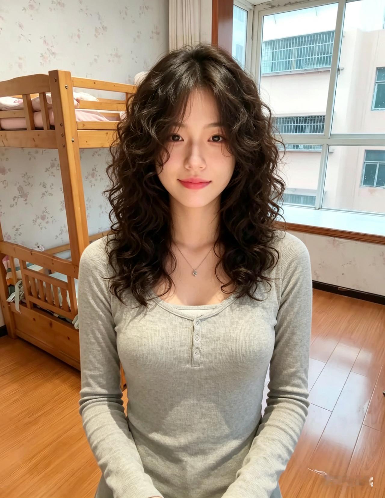你的卷发 是风留在发梢的印章 每一缕卷 都藏着自由的向往 在室内,是温柔的日常