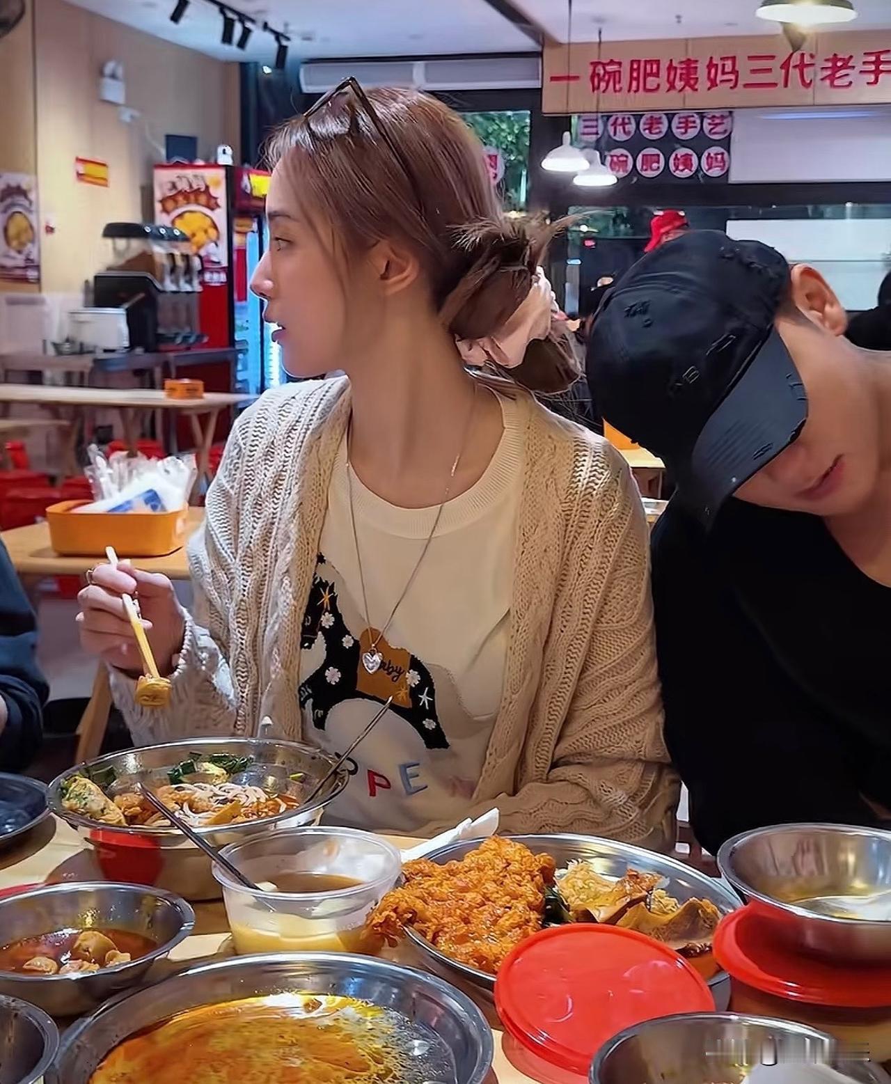 黄子韬吃螺狮粉的时候有点晕晕的,不管旁人在场直接就靠在徐艺洋身上了,这俩人是一点不管他人啊!黄子韬最爱😍吃蛋饼了吧,一整个自己都吃完了。自己的吃完了,还让徐艺洋喂他,关键是当时有汤汁,徐艺洋还用手在黄子韬嘴下面⬇️接着[爱慕][爱慕],这俩人真是随时撒狗粮,一屋子顾客都在呢,祝他们两个越来越好!