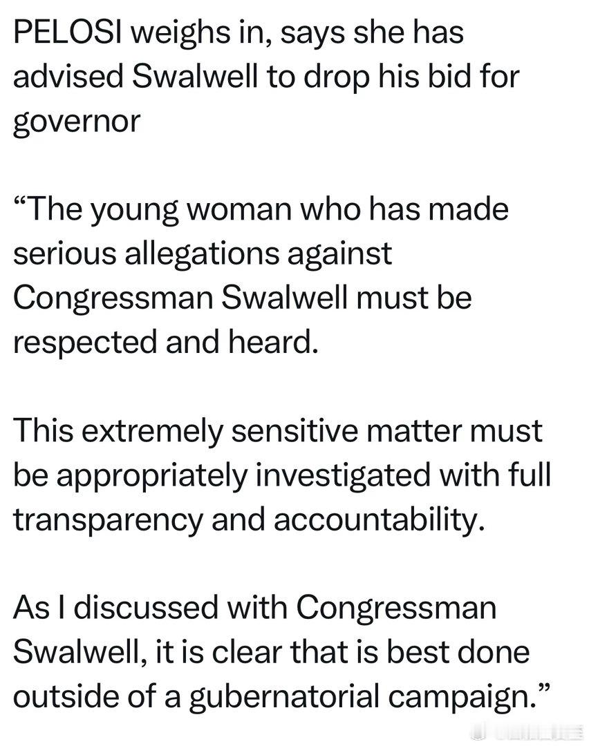 民主党在众议院的领袖,通过发言人表态:会严肃彻查