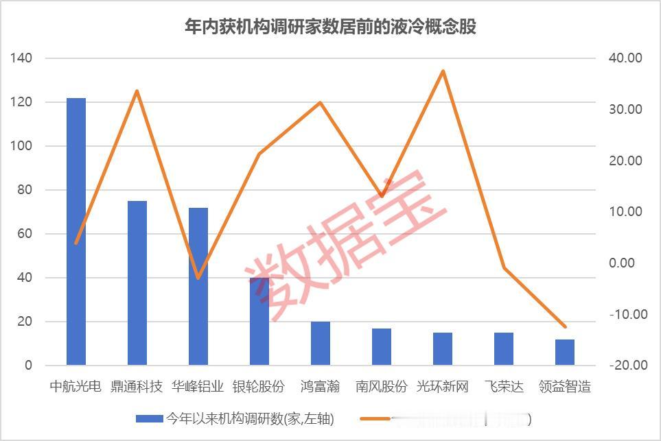 机构早已嗅到风口。统计显示,中航光电、鼎通科技、华峰铝业等液冷概念股年内获机构调研家数居前,其中中航光电调研机构超120家。尽管部分个股年内涨幅已高,但行业确定性增长仍吸引机构持续挖掘。
