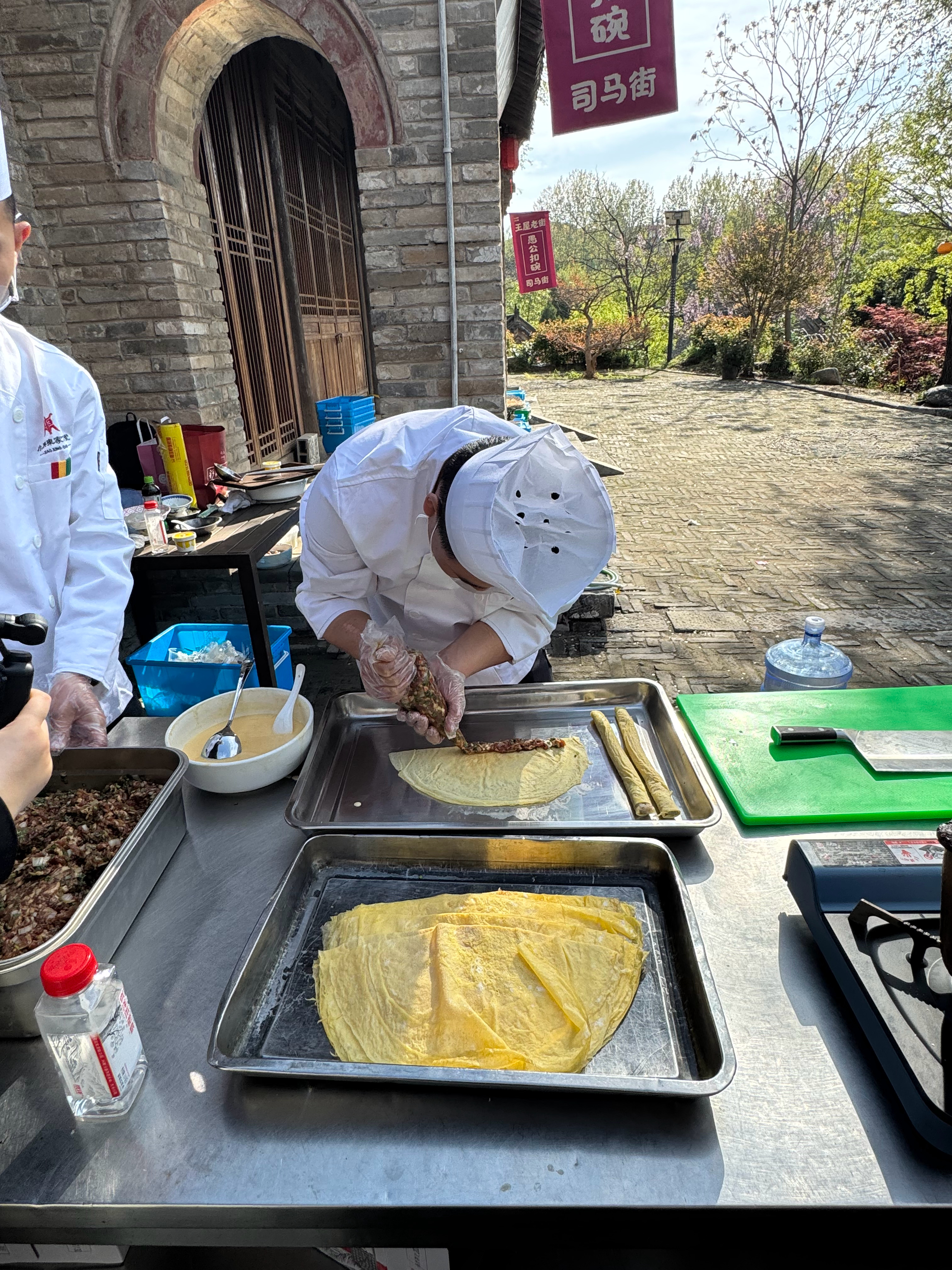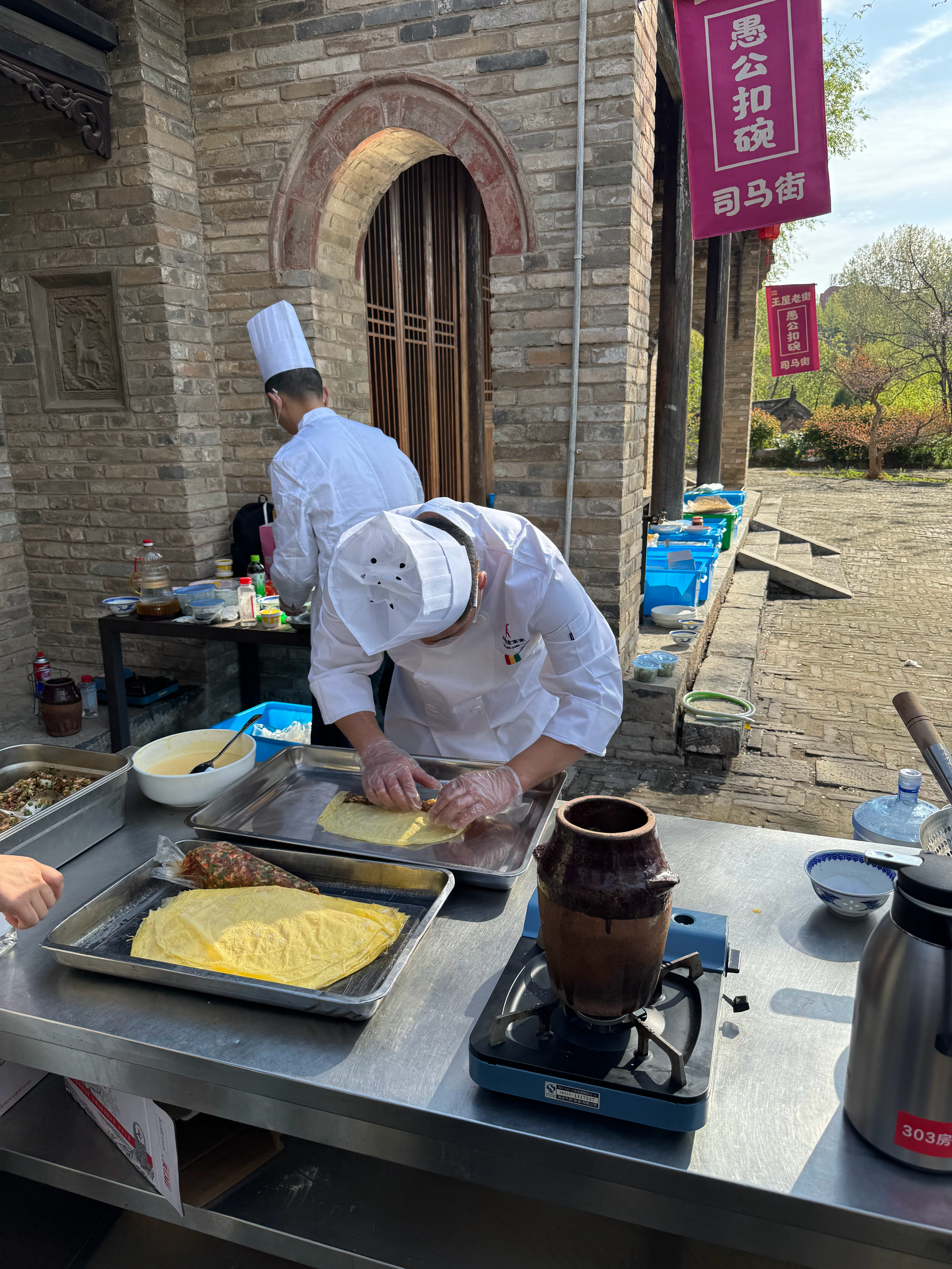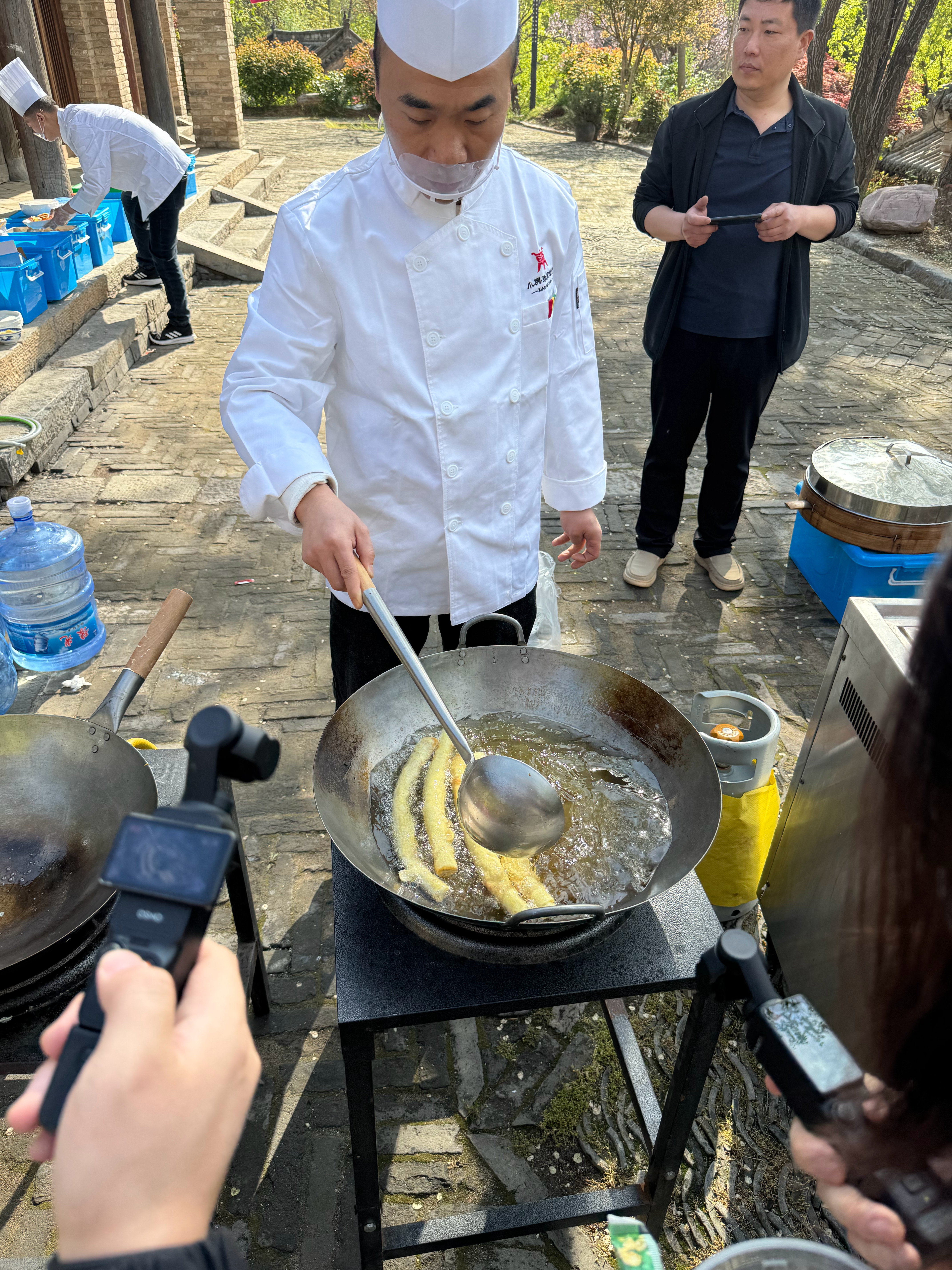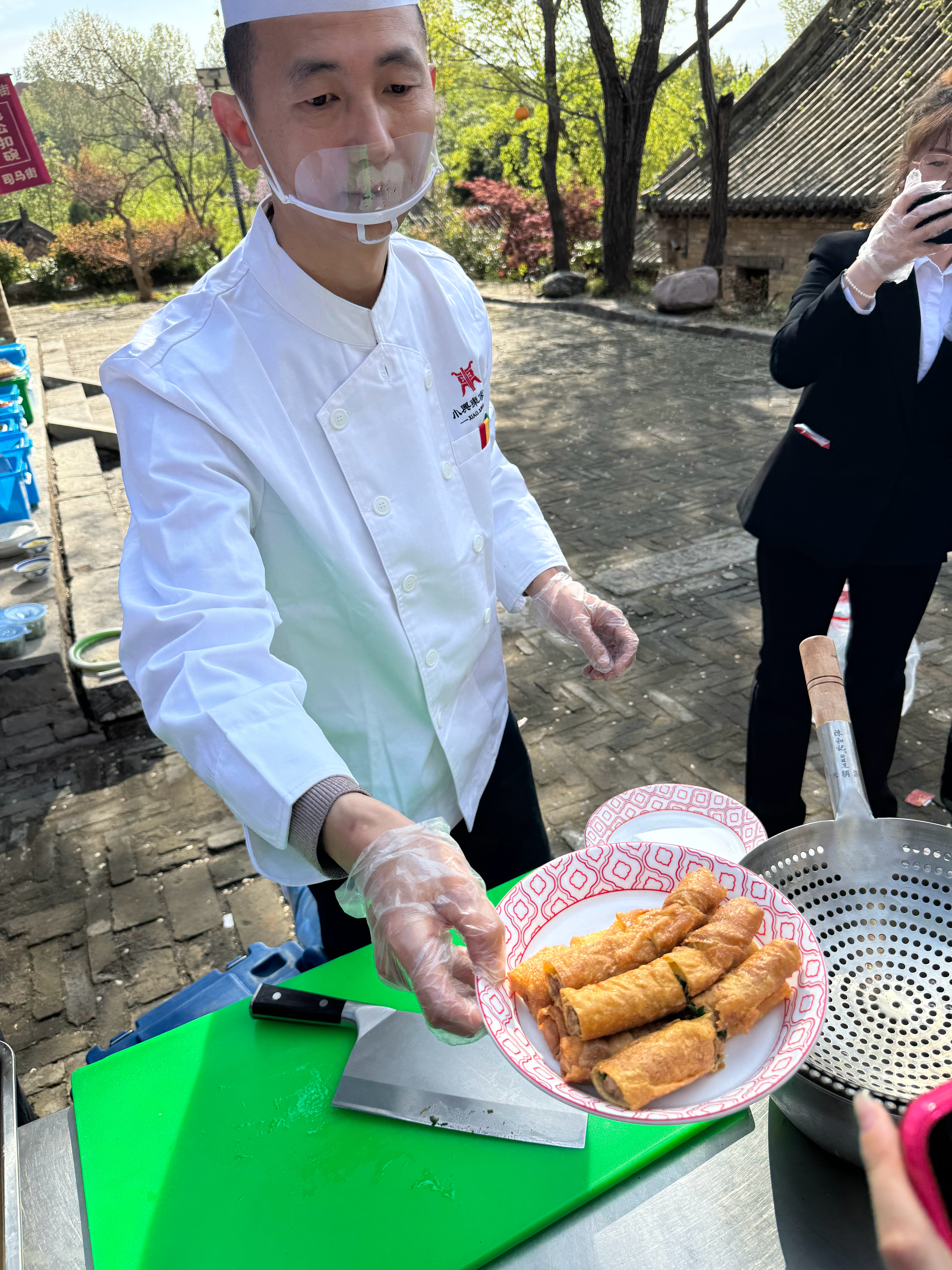 #济源王屋山文旅盛宴# 肉春卷。提到春卷,大都是甜的。济南的肉春卷,是肉的,咸的,鲜的。像饺子馅,但肉的颗粒更大;加入韭菜,伴着少许的肥肉,鲜红,点白,翠绿。搅拌好,放到一个塑料袋里,把塑料袋做成圆锥状,握着袋子,轻轻挤压,肉馅从锥尖缓缓流出,顺着摊开的春卷皮儿,均匀挤出长条。两头封边,轻轻卷起,再到最后,抹点面糊,将它粘合,长长的春卷胚子就做好了。一条一条的排在旁边,等那边的油锅起热。火候一到,春卷胚子便一条条跳到油锅,油面碰撞,个个翻滚,冒着泡,嗞嗞响,在厨师的笊篱里,腾空入油,来回翻滚,渐渐的,春卷变黄,变焦,看上去像北方的独根油条。再过一会儿,捞出,控油,切段,装盘。厨师递给围观的食客。夹起来,切口处,肉粒,韭菜,还鲜红的嫩,青翠的绿。放到嘴里,轻轻一咬,外皮的焦,内里的鲜,刚出油锅的香,春天都在嘴里。美食,始终是人类刻在骨子里的向往。人们也把这骨子里的渴望,细化到各色的绝技里。触发着味蕾,也在触动着心灵。是的,美食,承载的是人心,还有过去、现在和未来。