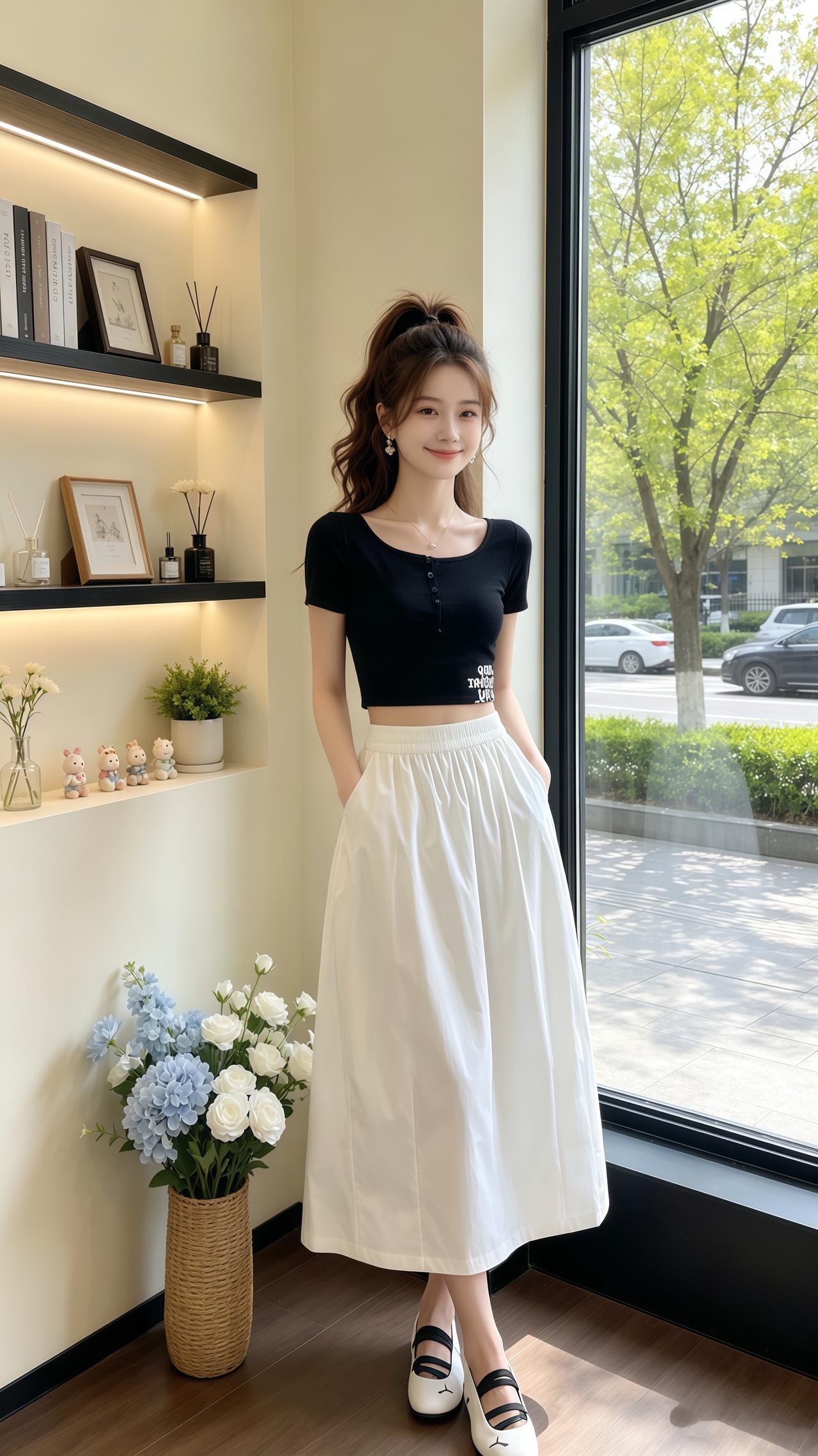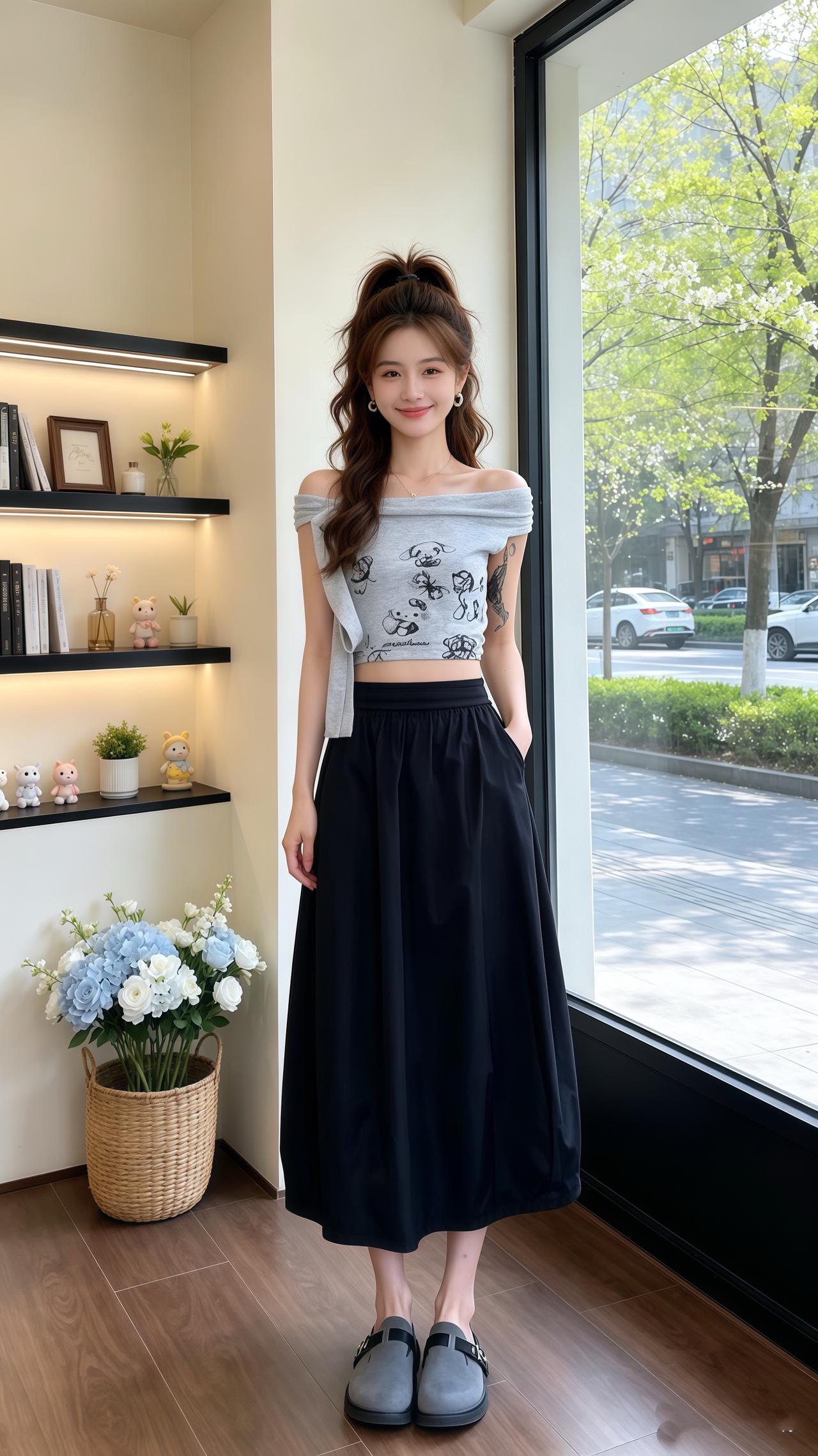 慵懒风A字半身裙 高腰中长款半身裙