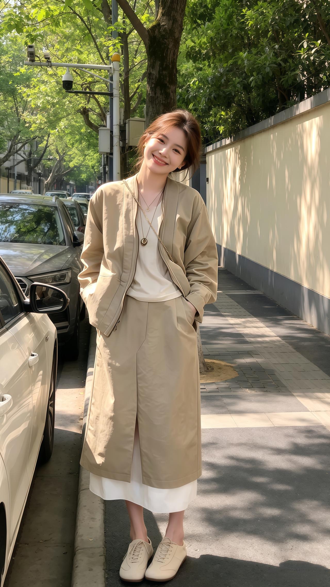 清新夏日穿搭,白色衬衫+米色短裙,优雅迷人!🌞👗👠