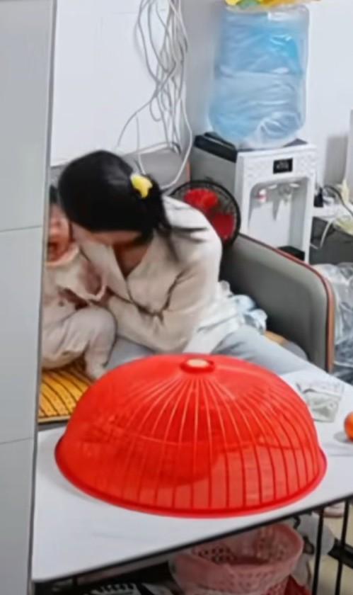 妈妈扭头一个不注意孩子的脸磕在了茶几上, 只听哐的一声,妈妈立马回身抱起孩子,