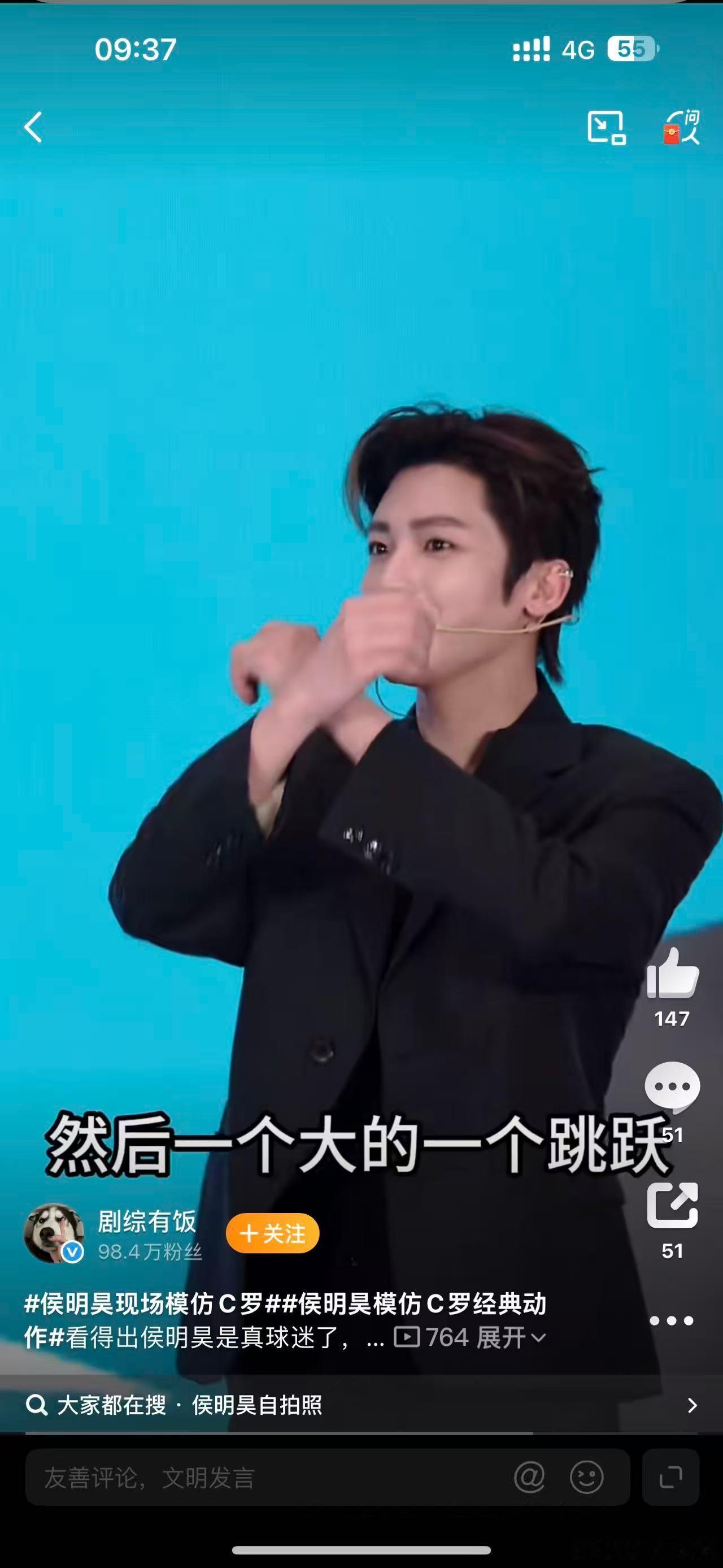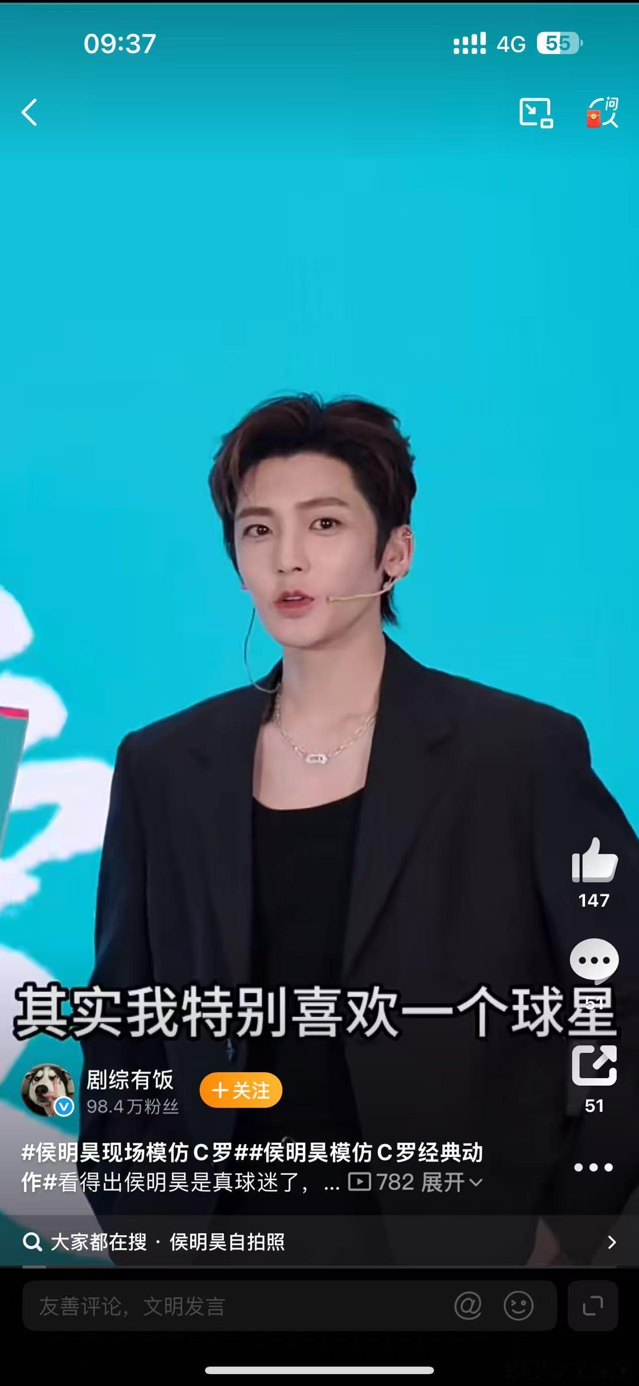 侯明昊分享看球装备侯明昊现场模仿C罗侯明昊崇拜c罗我非常能理解