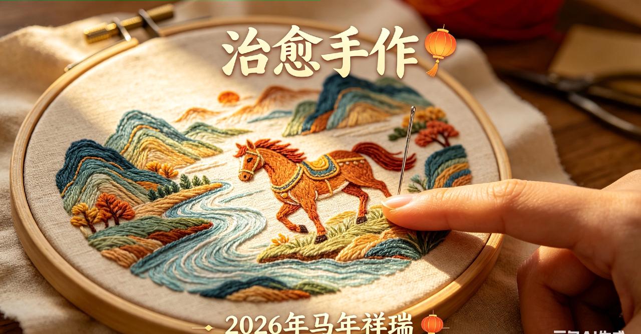 治愈手作: 银针引彩线,绣尽山河温柔;方寸藏天地,指尖绘马年祥瑞。🏮