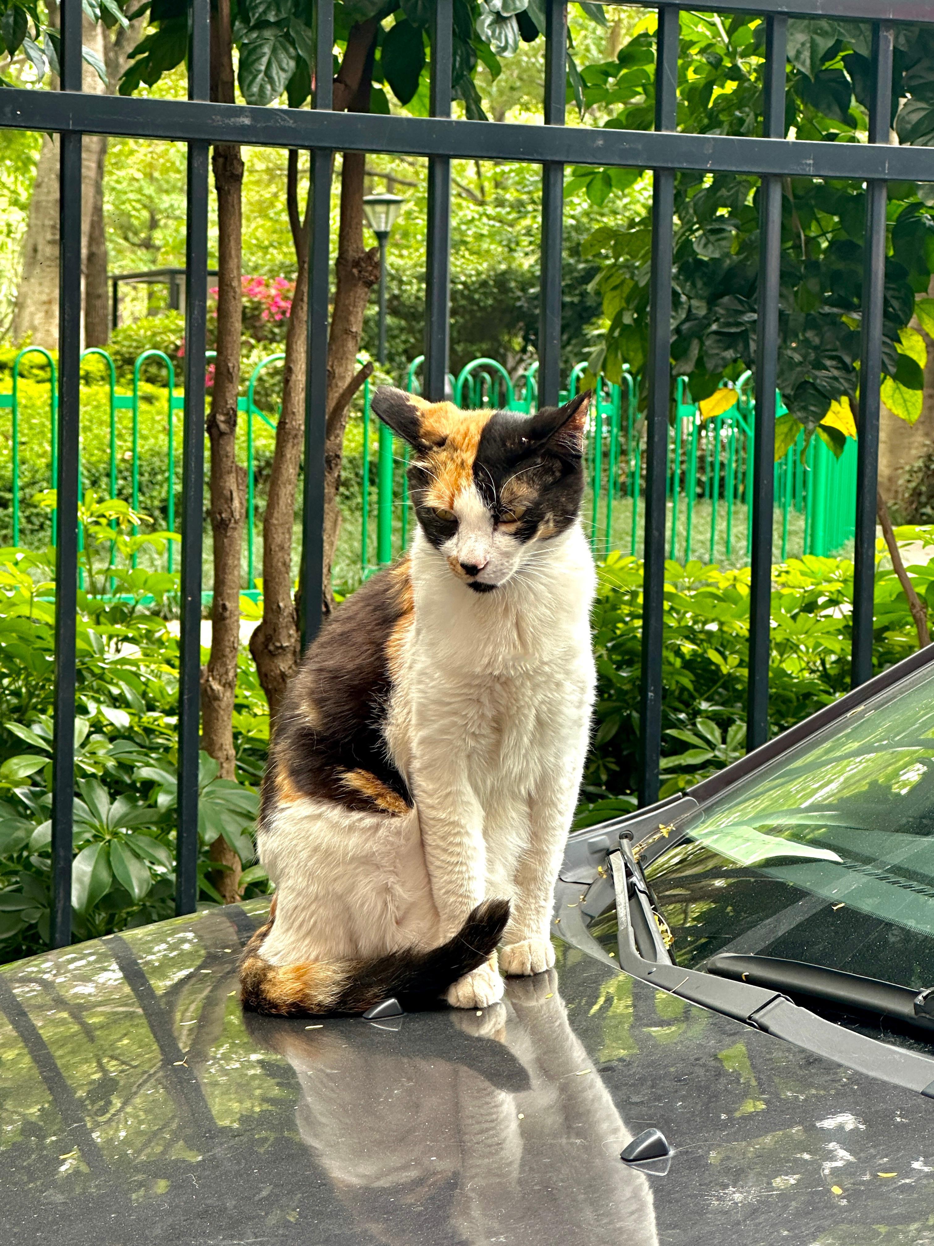 趴在车盖上的一只猫🐱猫咪猫 .我与汽车的日常car时尚 厦门·加州花园