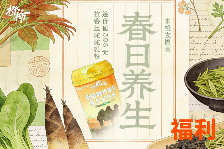 一年之计在于春!来橙友圈晒#春日养生#,讲讲你的养生故事,送价值598元的拉善丝驼热销爆款驼乳粉