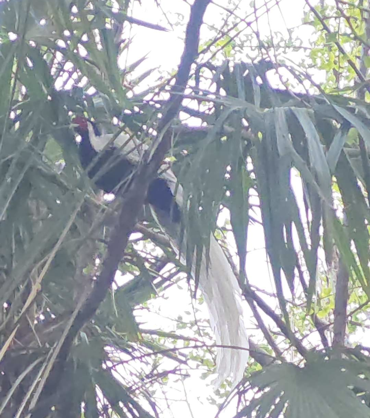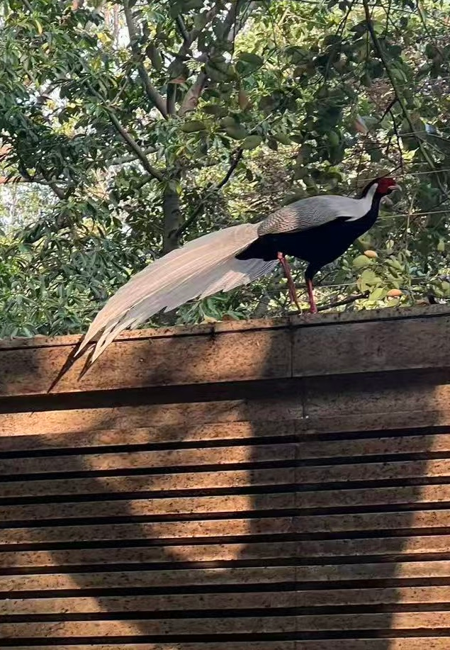 对面荷花塘社区绿城物业一位保安大姐说,“昨天中午,我看到一只大鸟,白白的,长长的尾巴,很吸引人,我不知道它叫白鹇,以前没见过,也不知道它怎么飞来的。”