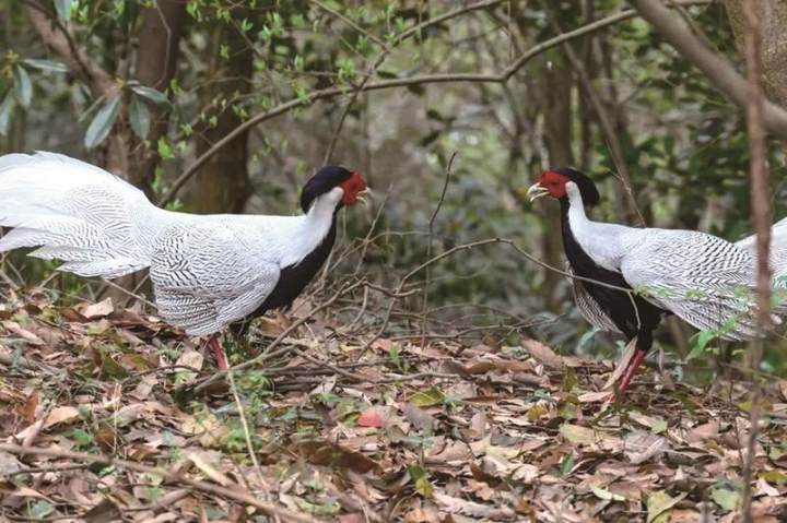 山中两只白鹇网友“小和山之光”拍于将军山