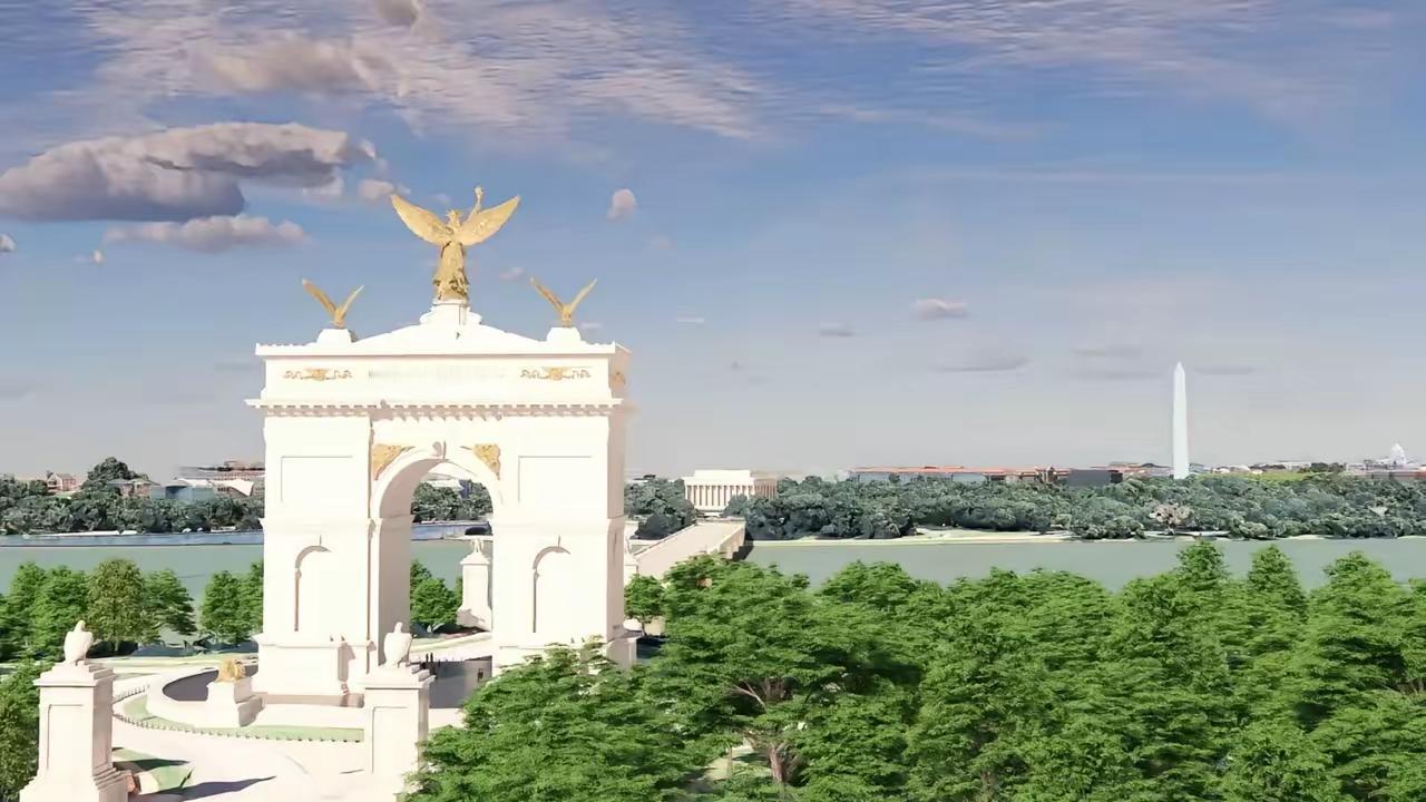 来看看,特朗普为美国建国250周年纪念活动,选定修建的美国版凯旋门方案。