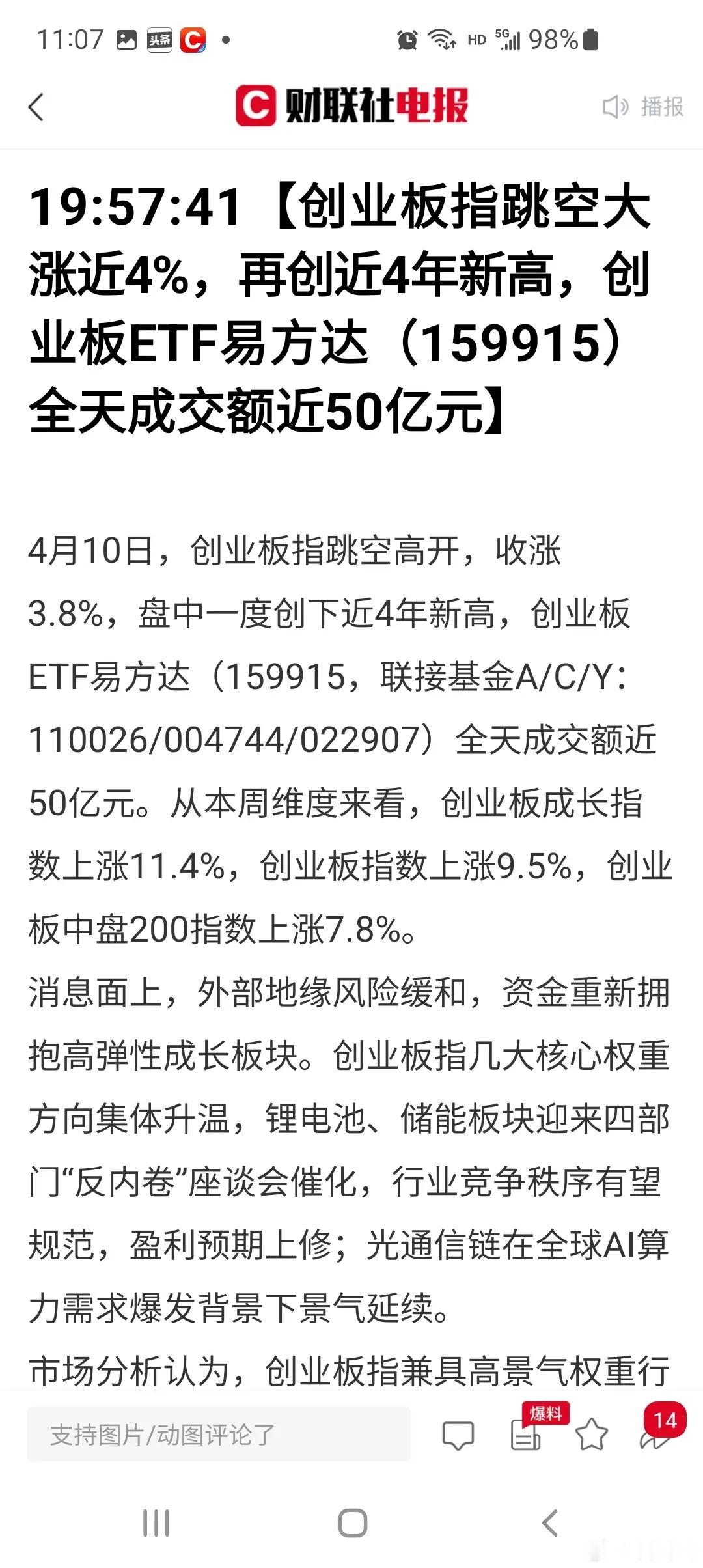 创业板第四套标准落地!未盈利也能上市,资金提前抢跑起飞!家人们,A股又出史诗级利好!4月11日,创业板IPO第四套上市标准正式落地,直接打破了“上市必须盈利”的铁律!更炸裂的是,资金提前一天就疯狂抢跑:4月10日创业板指跳空大涨近4%,创下近4年新高!这波提前反应,直接坐实了利好,板块要起飞了! 一、第四套标准到底是什么?这次改革最核心的,就是新增了两套无盈利要求的上市标准,精准匹配不同类型的创新企业:标准一(面向新兴产业)预计市值不低于 30亿元最近一年营业收入不低于 2亿元最近三年营业收入复合增长率不低于 30%。标准二(面向未来产业)预计市值不低于 40亿元 最近一年营业收入不低于 2亿元最近三年累计研发投入不低于 1亿元,且占营收比例不低于 15%。划重点:两套标准都不看净利润!彻底跳出了单一财务指标的框架,完美适配了新兴产业、未来产业企业“前期投入大、收入起点低、价值跃升快”的特点,解决了原有标准对高成长创新企业适配性不足的问题。 二、资金提前抢跑!创业板指暴涨近4%创4年新高就在利好正式落地前一天,市场已经用真金白银投票:4月10日,创业板指跳空高开,最终收涨3.8%,盘中一度创下近4年新高!跟踪创业板指的易方达创业板ETF(159915)全天成交额直接逼近50亿元,资金抢筹情绪拉满!从本周表现来看,创业板成长指数大涨11.4%,创业板指累计上涨9.5%,中盘200指数也涨超7.8%,成长风格彻底爆发!这波提前大涨,就是资金精准预判了第四套标准的利好:外部地缘风险缓和,资金重新拥抱高弹性成长板块;市场早已提前消化了创业板改革预期,利好落地前完成抢筹;叠加锂电池、储能“反内卷”座谈会催化,光通信AI算力需求爆发,创业板核心权重集体发力,直接把指数推向新高。 三、为什么要推出第四套标准?监管的意图非常明确,核心就是三点:1. 服务新质生产力:支持新产业、新业态、新技术企业,以及新型消费、现代服务业等优质创新创业企业发展。2. 留住优质资产:长期以来,很多新消费、服务类优质企业都选择赴港上市,这次改革直接打开了A股通道,有望吸引优质资产回流。3. 错位发展,强化特色:和科创板形成明确区分——科创板聚焦“硬科技”核心技术突破,创业板第四套标准更侧重技术产业化、商业化落地,服务已经有一定收入规模的成长型企业。 四、哪些企业最受益?根据投行人士的分析,以下赛道的企业将迎来重大利好:第一梯队:高成长新兴产业AI、大数据、云计算等数字经济领域新能源、高端装备等高端制造领域生物医药、创新药等医疗健康领域这类企业符合“营收高增长”的特点,完美适配第一套标准。 第二梯队:强研发未来产业量子计算、脑机接口、人形机器人等前沿科技领域合成生物、基因编辑等生命科学领域这类企业研发投入高、短期盈利弱,第二套标准就是为它们量身打造的。 第三梯队:新消费&现代服务业- 新茶饮、潮玩、宠物经济、社区零售- 美妆个护、国潮服饰、SaaS服务这类企业此前因盈利要求难以在A股上市,现在终于有了明确的上市通道! 五、风险防控:严防“带病上市”放宽上市标准≠降低审核要求!监管同步推出了全套风控措施,守住底线:1. 严把准入关:压实中介机构“看门人”责任,严防“带病申报”“一哄而上”。2. 风险标识:未盈利企业上市后,股票简称后将加“U”标识,持续提示风险。3. 减持限制:实控人、董监高自上市之日起3个完整会计年度内,不得减持首发前股份,保护中小投资者。4. 投资者教育:强化风险揭示,引导理性投资。 六、对A股市场有什么影响?短期:利好创投、券商投行板块,尤其是深耕新消费、硬科技赛道的券商;创业板成长风格将持续受益,高弹性标的迎来估值修复。 中期:优质创新企业加速上市,丰富A股投资标的,增量资金持续流入创业板。长期:推动资本市场更好服务实体经济,助力新质生产力发展,是A股制度建设的重要一步。 你觉得第四套标准落地后,哪个赛道会最先跑出起飞的黑马?是AI、新消费,还是生物医药?评论区聊聊你的看法!