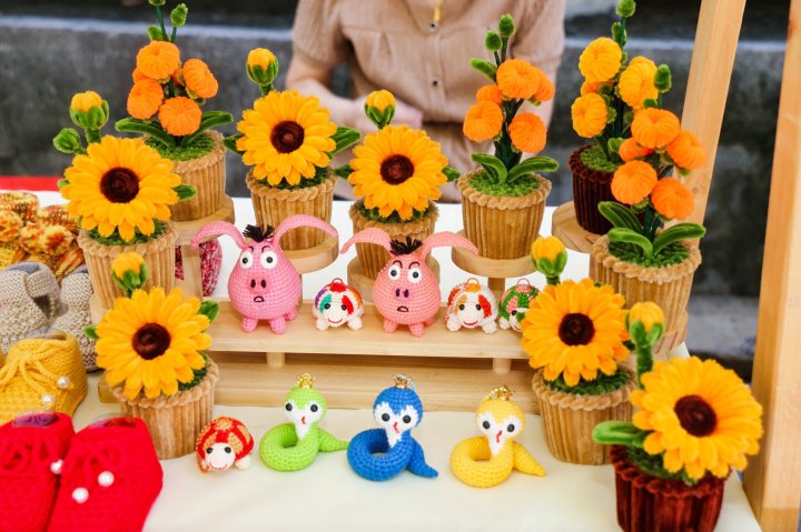 “我们有一句口号,‘花花向未来’。不少残疾人有着想要多学一点手艺去融入社会的需求,我本身也是残疾人,能够理解他们的需求,更能走到他们的心里去。因此,‘花花小铺’诞生了,里面的成员大都是喜欢做手工的残疾人。大家把自己喜欢的东西编织成作品,慢慢把它们卖给喜欢手工作品的市民游客。”