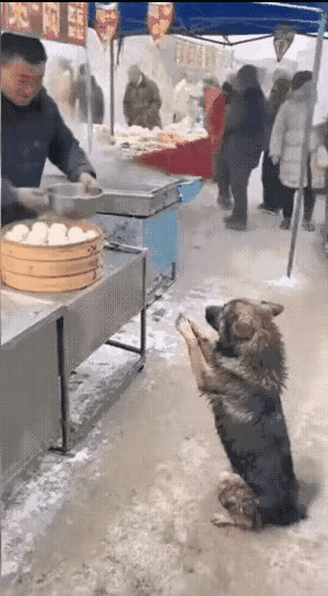 饥寒交迫的流浪狗到包子铺想要点吃的谁知摊主拿起热水对着它就浇了上去,只好灰溜溜的