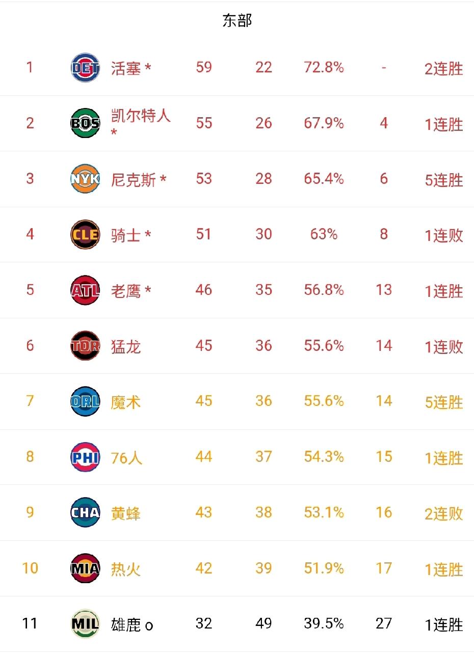 东部只有前四名锁定,老鹰只是锁定季后赛,东部最后一个季后赛名额归谁?