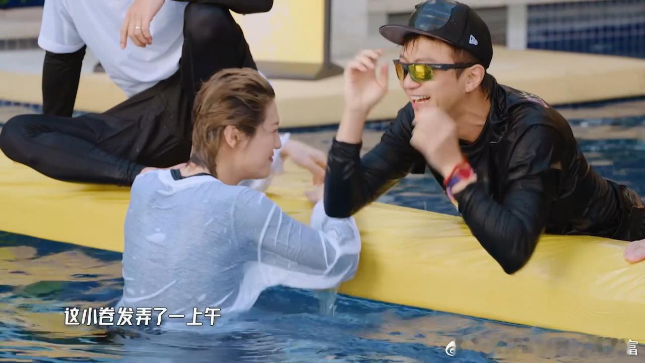 鹿晗好不容易做个头发鹿晗:谁懂啊!卷了一上午的小卷发,水上游戏一秒打回原形早知道