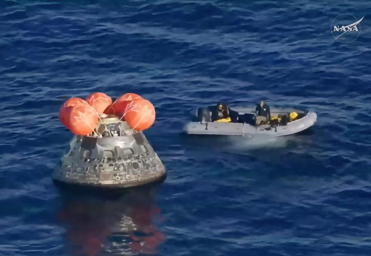 在4月11日,美国东部时间晚8点07分,一道橙白相间的“猎户座”舱体随着降落伞慢慢飘落,最终溅起太平洋水花。