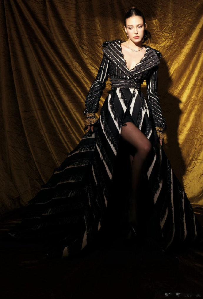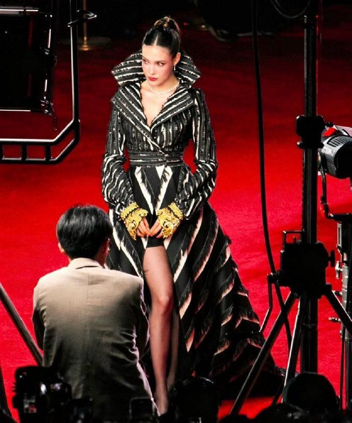 她参加了《穿普拉达的女王2》中国首映礼,一袭GuoPei2017秋冬高级定制系列黑白大衣裙装亮相。