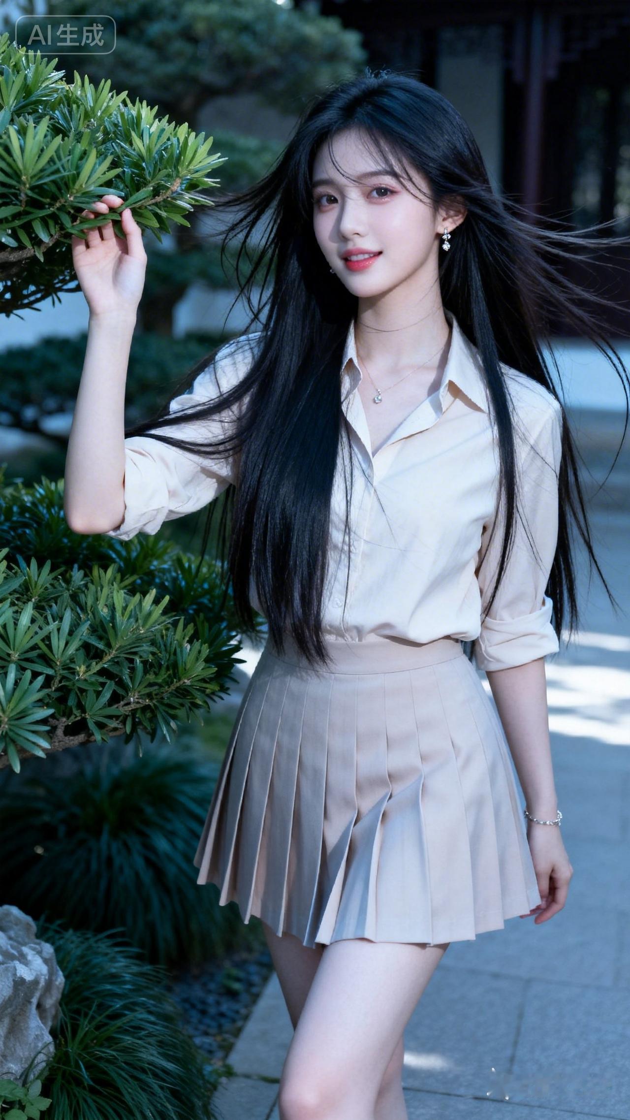 清新学院风穿搭,白色衬衫+黑色百褶裙,甜美又优雅!💕