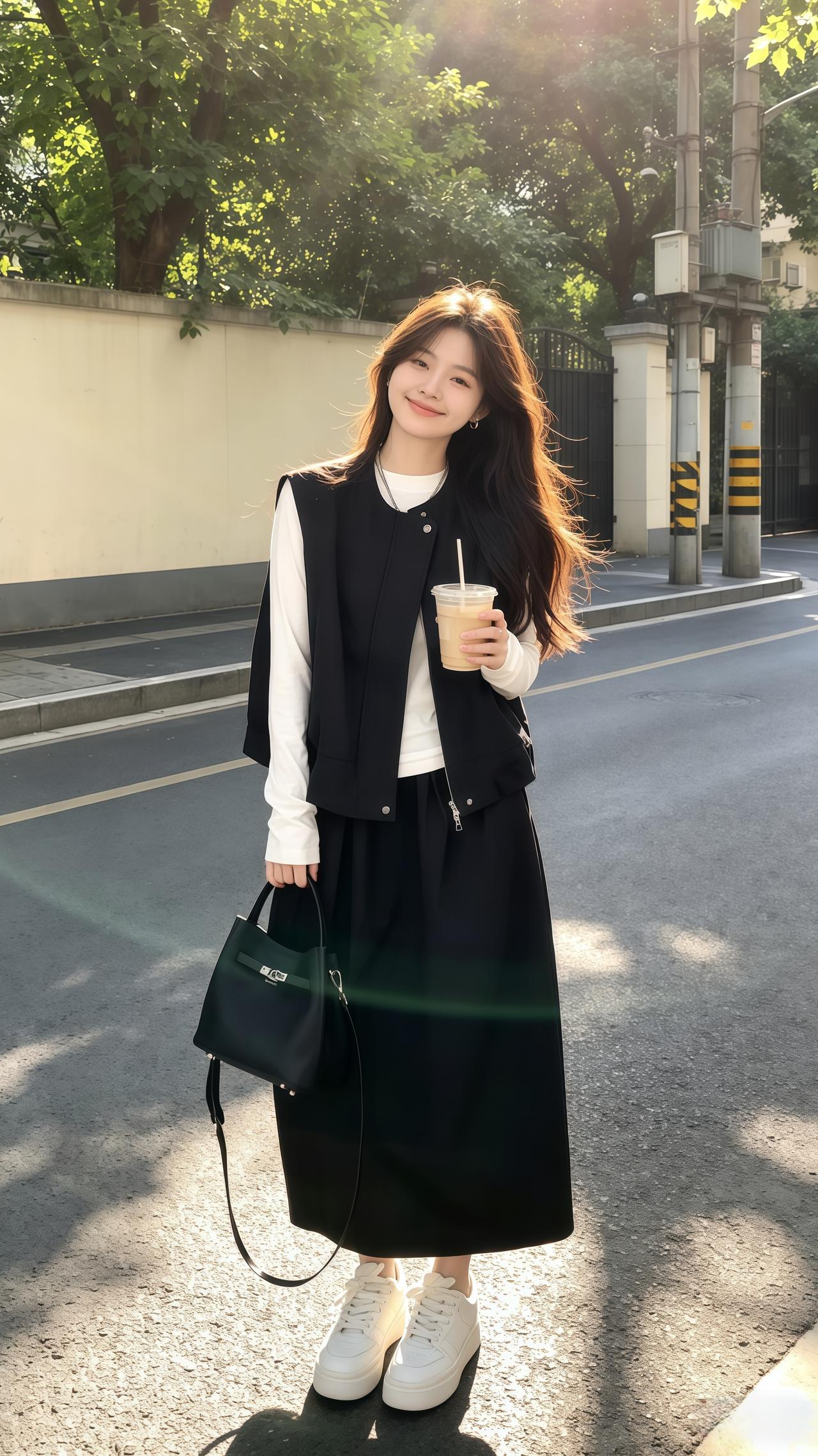 马甲半身裙套装 穿搭 穿搭vlog 韩系穿搭 ootd穿搭