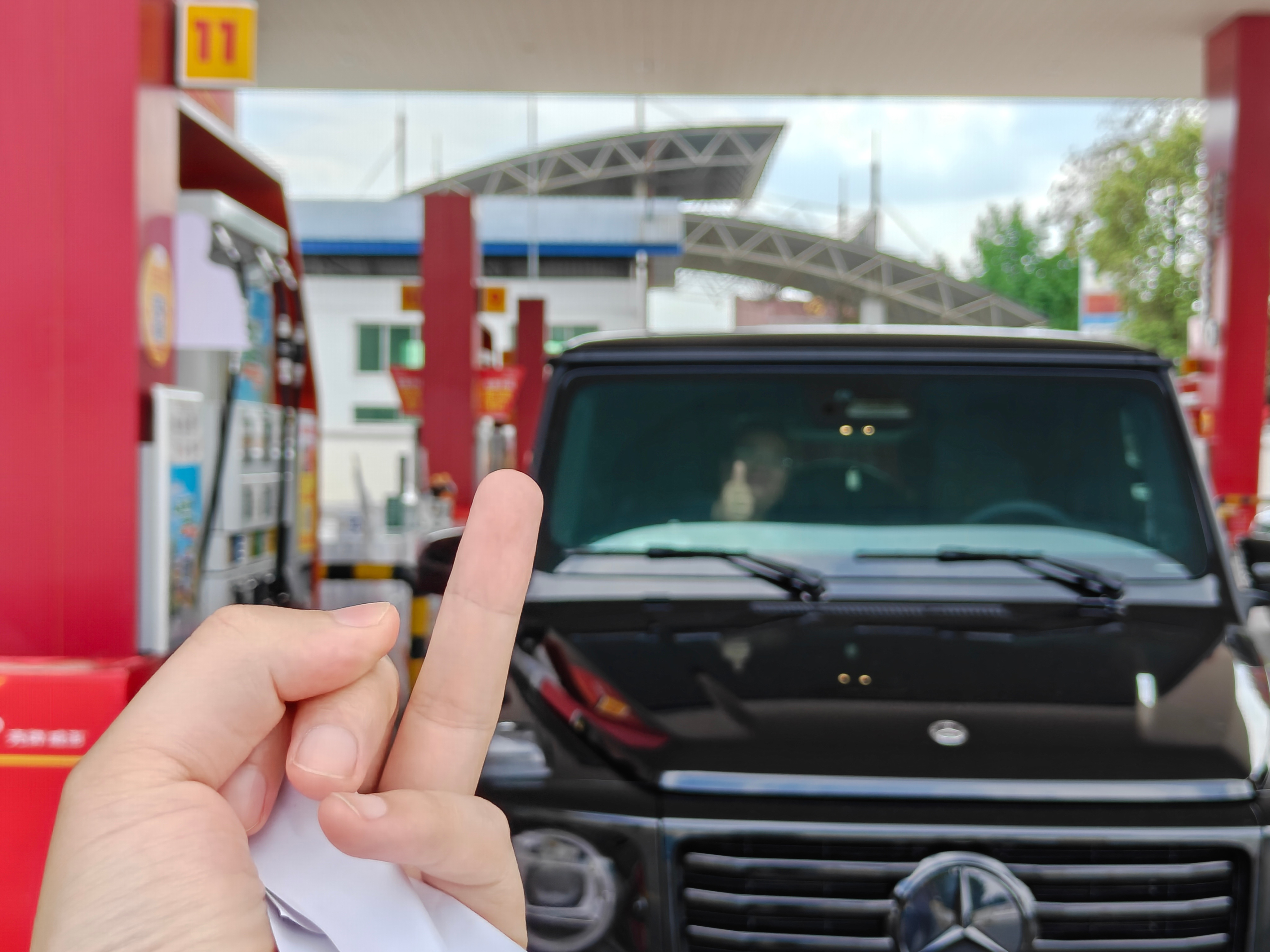 刚坐上车没多久他又拐进加油站加完油他盯着我看 迟迟不去付钱懂了 让我买单的意思…