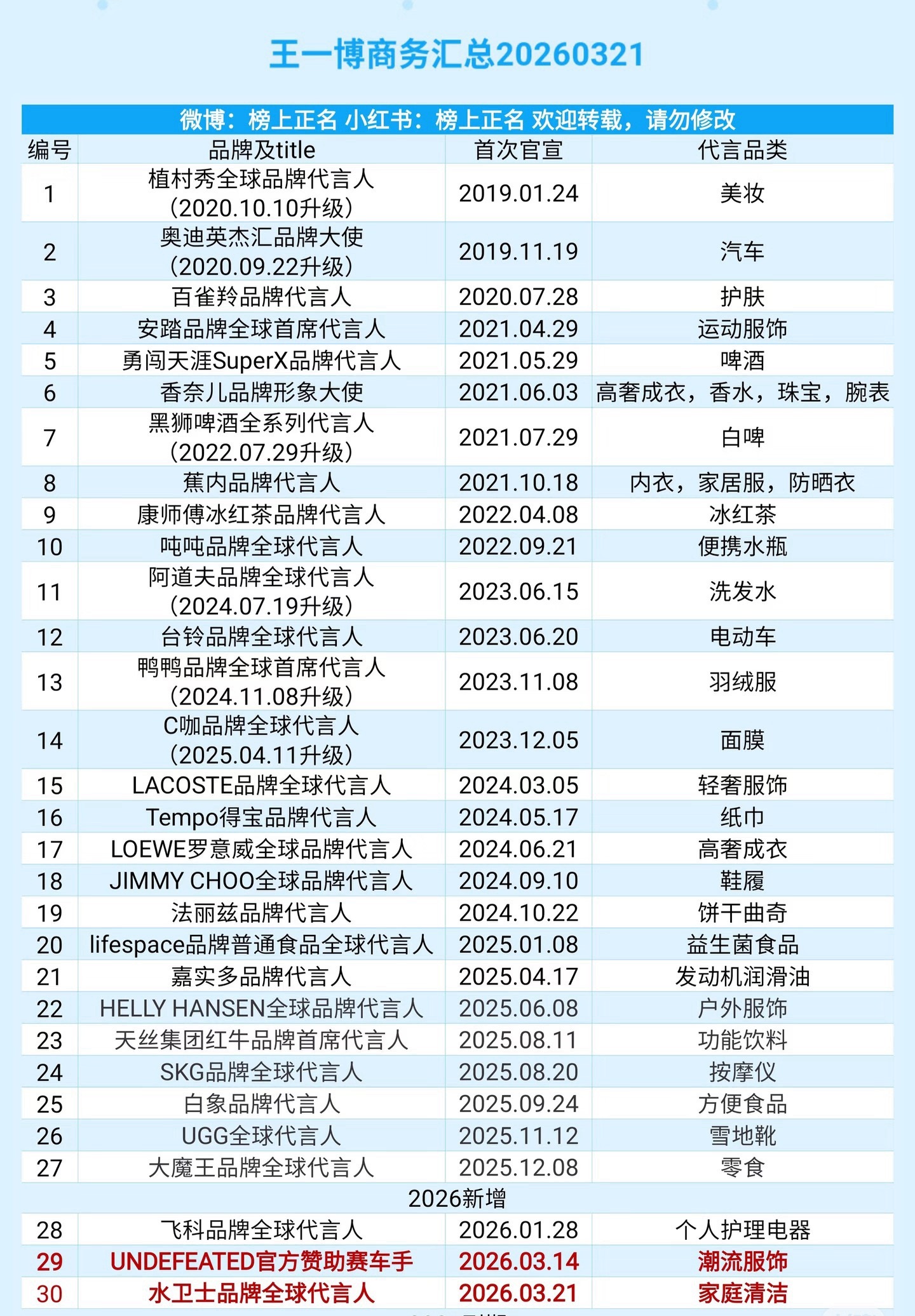 王一博又又又有新代言了,26年新增的第四个代言,商业价值top,内娱断层果然不一样…
