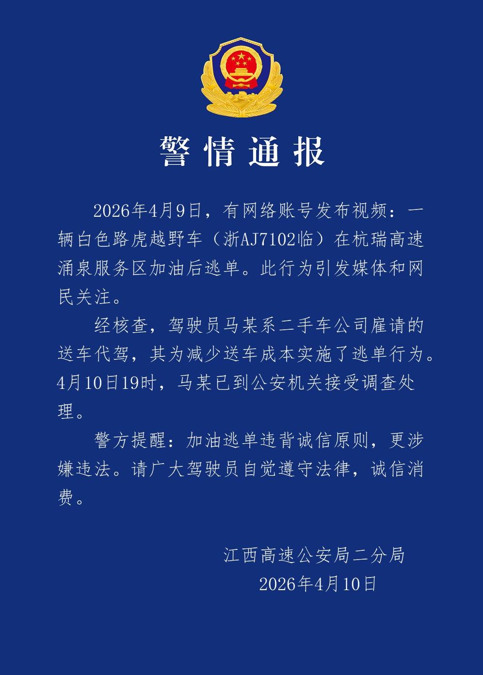 真相大白路虎加油逃单男子已到案,正接受公安机关调查处理。逃单男子姓马,是二