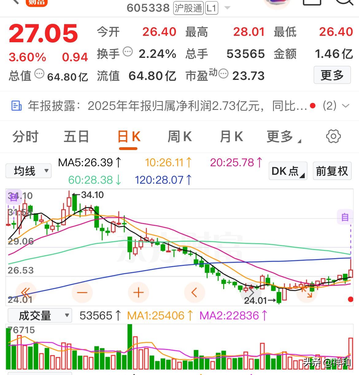 芭比食品:年报显示扣非净利润增长16.66%,并推出了分红总额超全年利润的慷慨方案。技术面上与3.18日大涨相呼应,也完成了第二次确认。