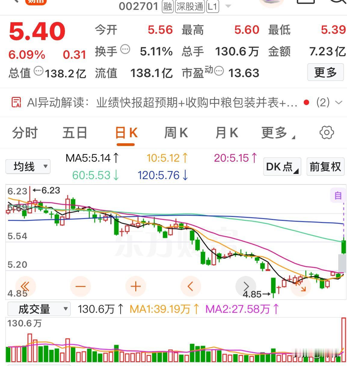 千禾味业:前一次倍量上涨我分析过,周五是第二次,而且收盘价过了前一次高点,完成二次确认。