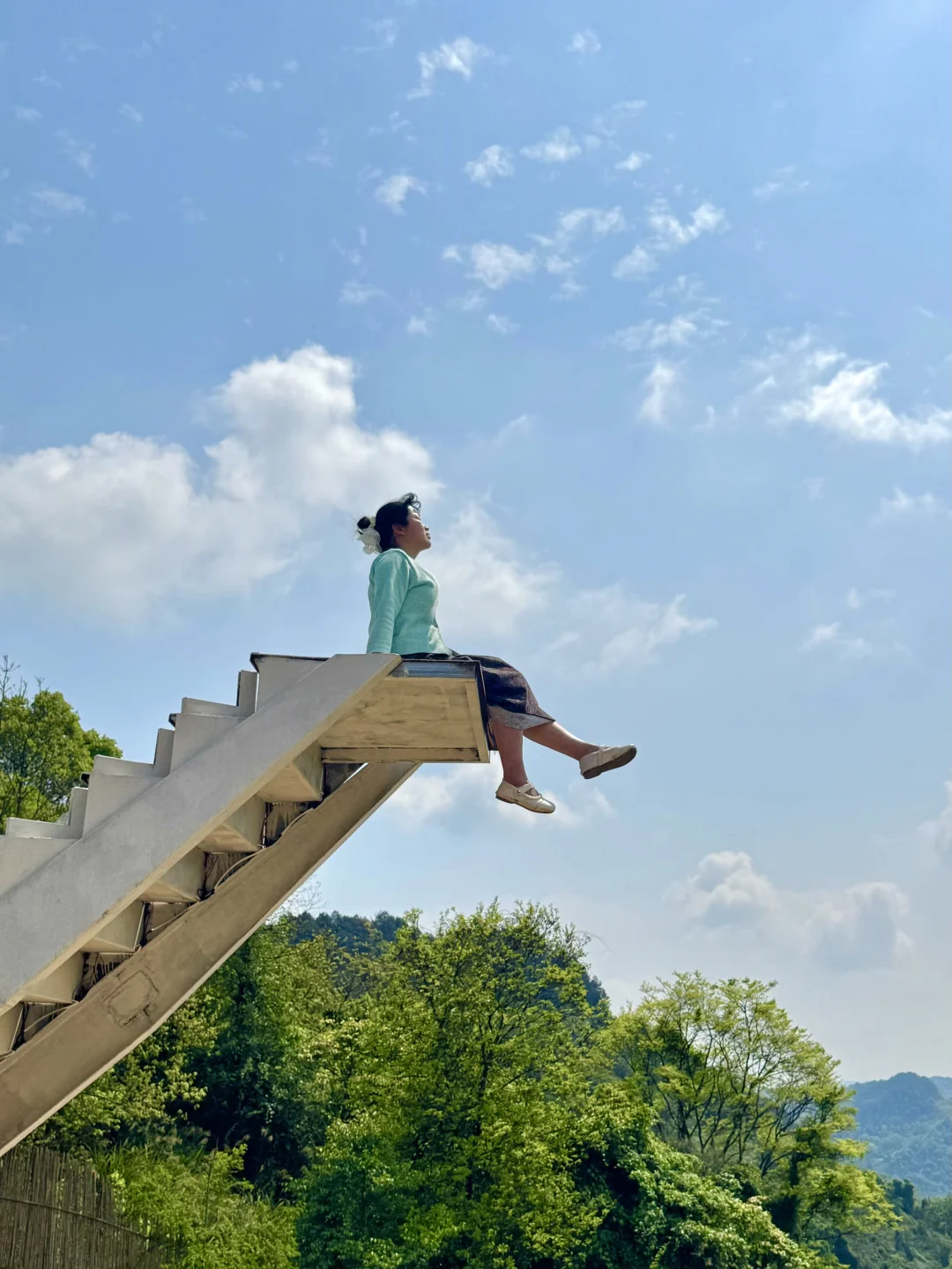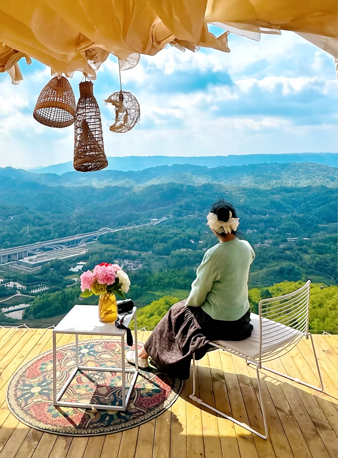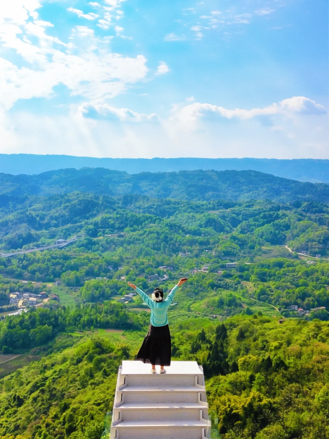 站在悬崖边,180度无死角俯瞰层叠青山,漫山绿意扑面而来,风里都是草木清香,视野开阔到让人心情愉悦😀