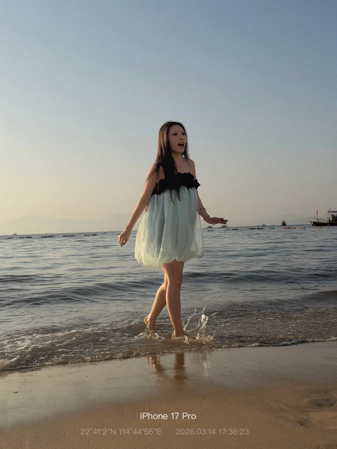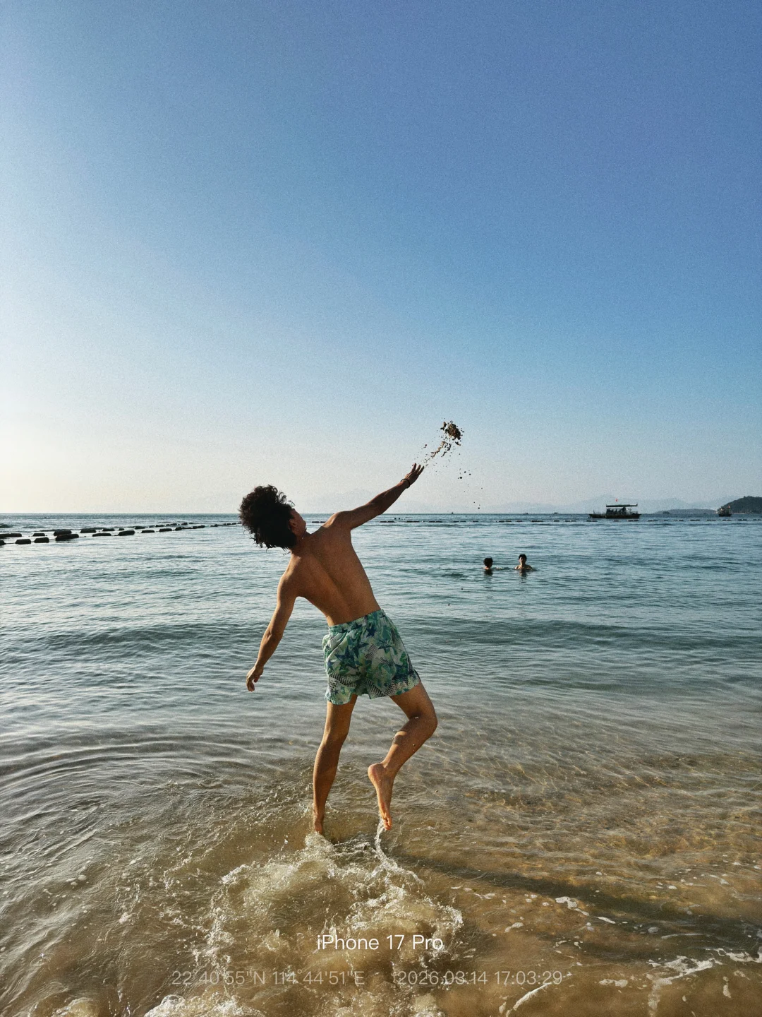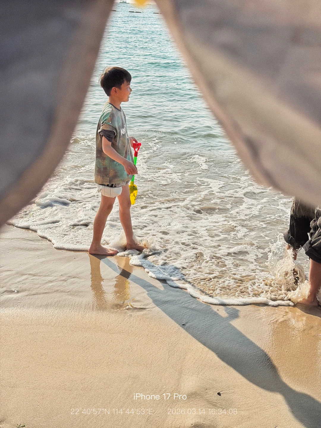 让小朋友在沙滩上踩踩沙、玩玩海水。