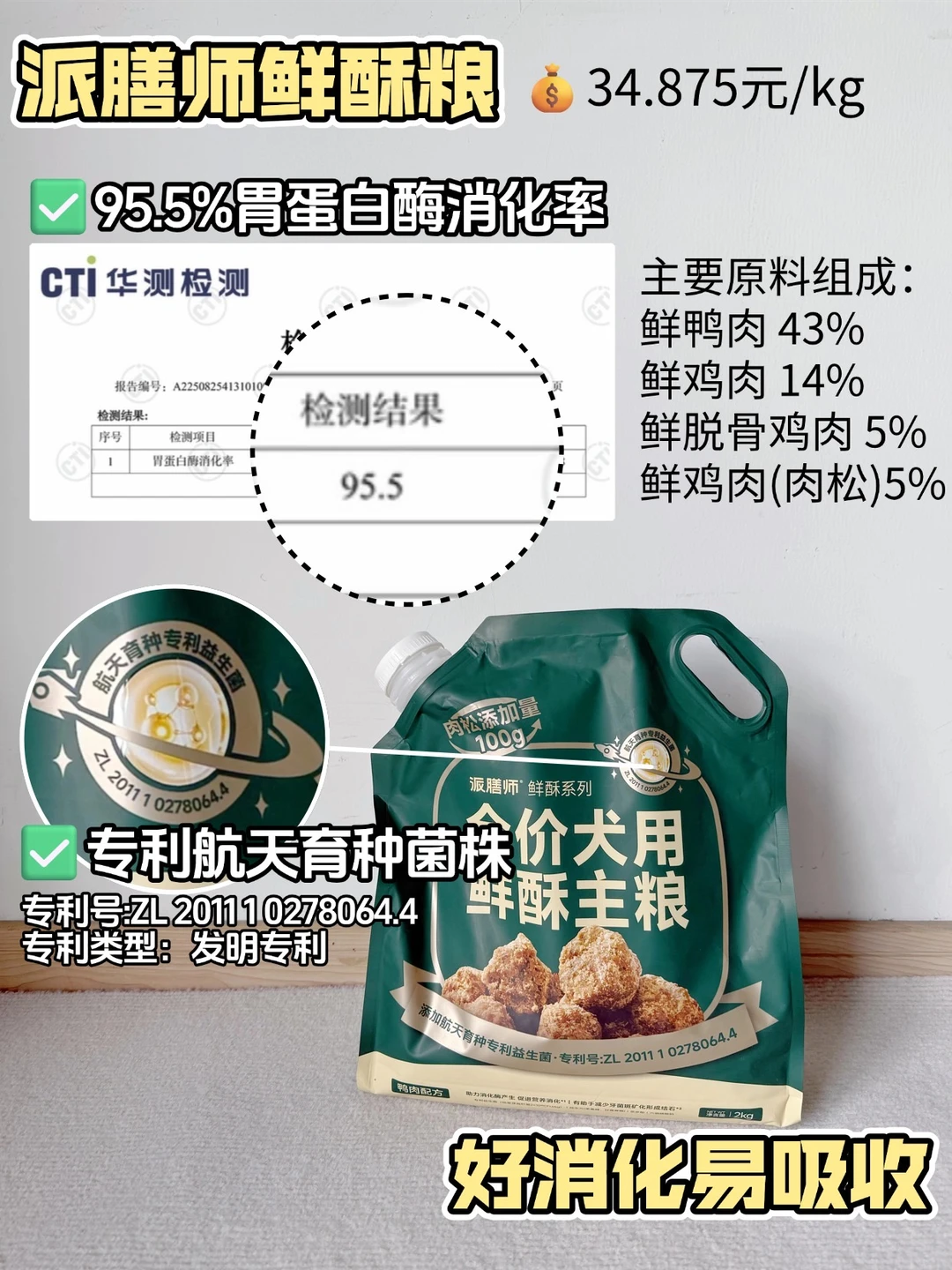 添加专利益生菌和益生元,这个益生菌是专利航天育种菌株,对肠胃非常友好,再加上它的颗粒是做的比较酥脆,还是多孔的,增加了消化面积,所以比较好消化!我查了下他们的胃蛋白酶消化率是95.5%,这个数值是很高的。