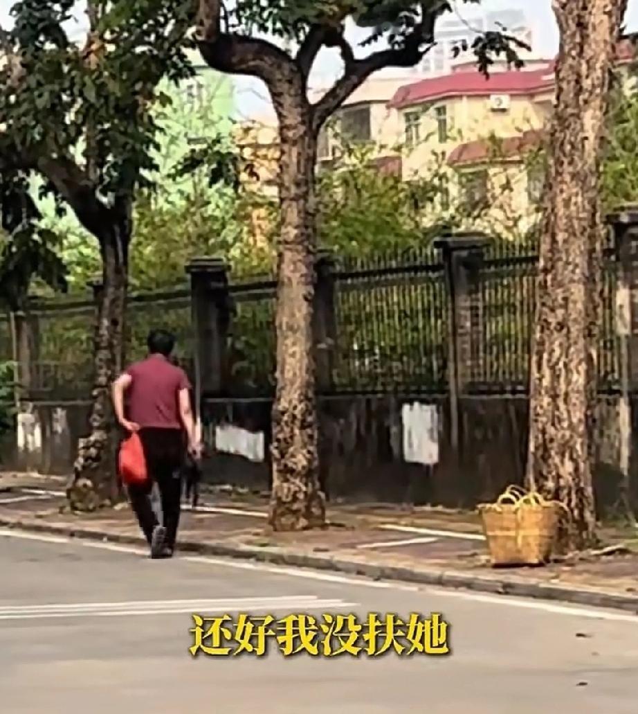 看到老人离去的身影,男子庆幸自己,幸好没有去扶她。