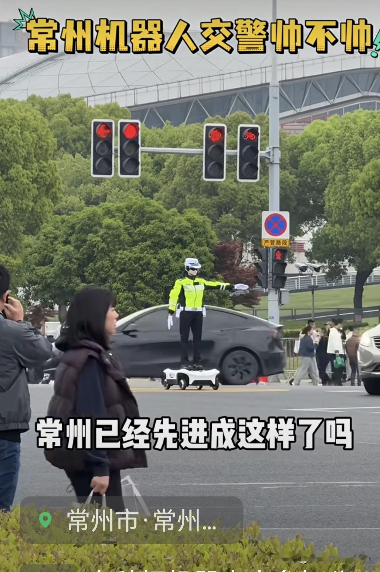 2026苏超揭幕赛今晚7点30分就要在常州奥体中心拉开帷幕,没想到常州奥体中心外面机器人交警今天也上岗亮相了。