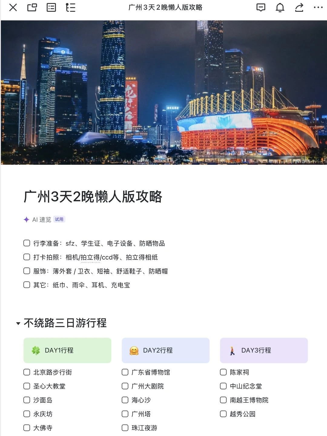 本来准备去广州玩,连夜整理了下攻略