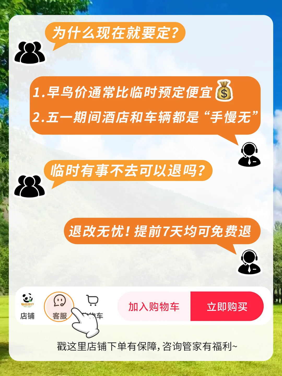 ✅ 资源手慢无:五一的酒店和车真的要靠抢的,现在好领队和好房间都还有得挑!