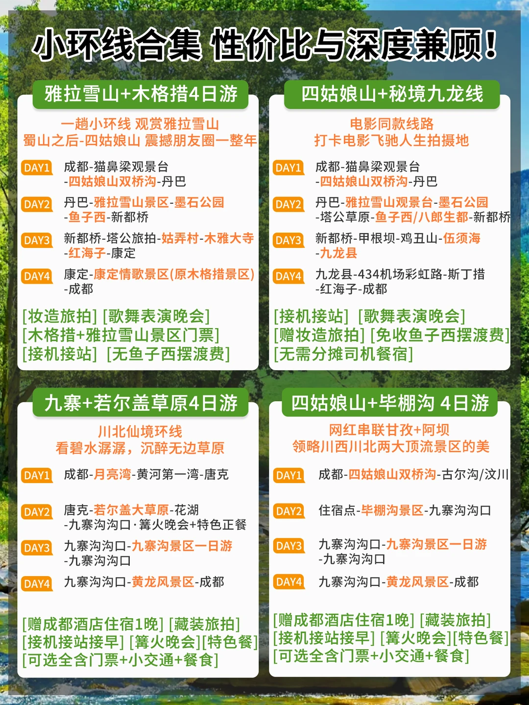 🟢 九寨沟+若尔盖草原/峨眉乐山