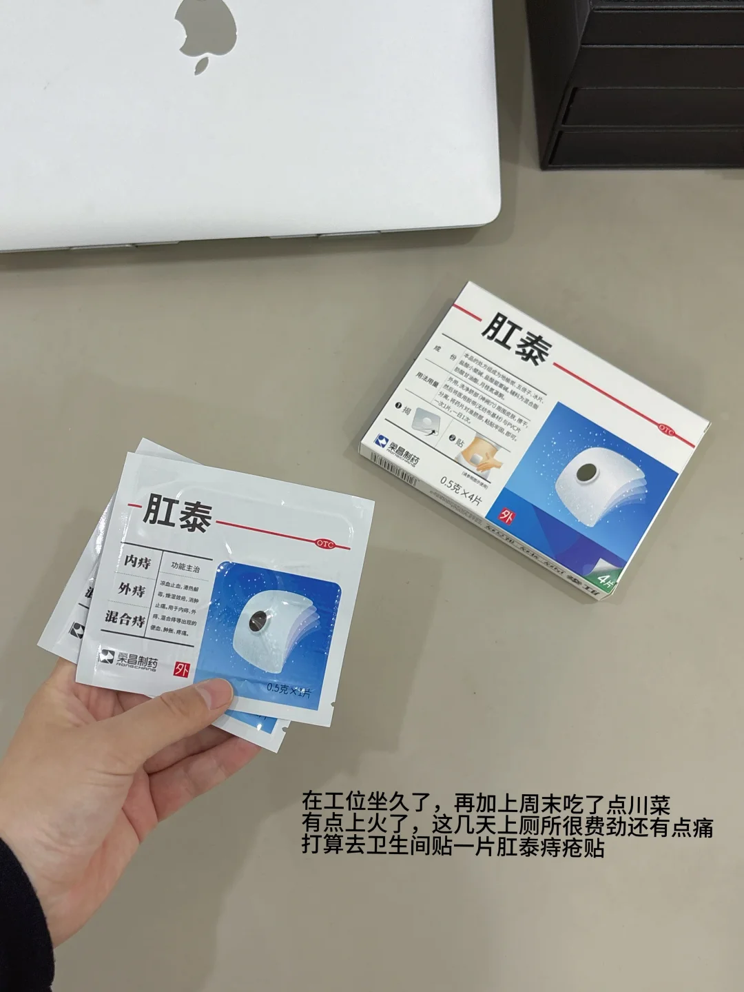 💡去卫生间贴了一片【肛泰贴】,它是贴在肚脐上的,贴完半小时就感觉没那么痛了。当“有痔青年”好多年了,之前也用过涂抹类型的,很不方便,还是这种贴片更适合,一天一片就可以了,使用方便,5秒就能贴上,在办公室备一盒,上班用着也不怕尴尬,长久使用痔疮发作的就没那么勤了!