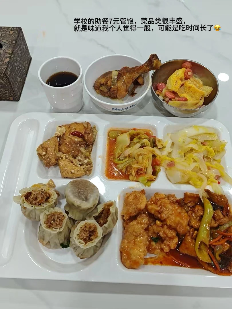 11:40下课,食堂吃饭,自助餐7元管饱,菜品类很丰盛但味道一般般😂