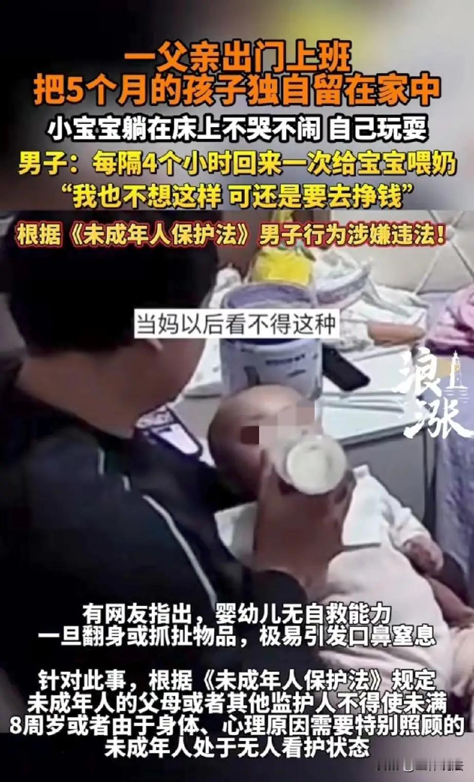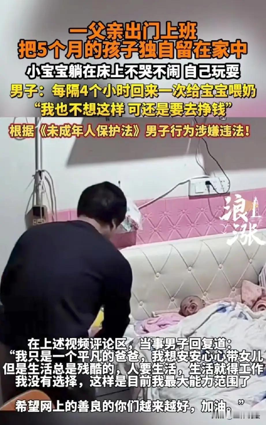 这位爸爸独自带着5个月大的宝宝,为了养家不得不出门干活,每4小时赶回家喂奶、换尿布,孩子安安静静躺在床上不哭不闹,懂事得让人心疼。他说“别无选择”,不是推卸责任,而是被现实逼到了绝境。