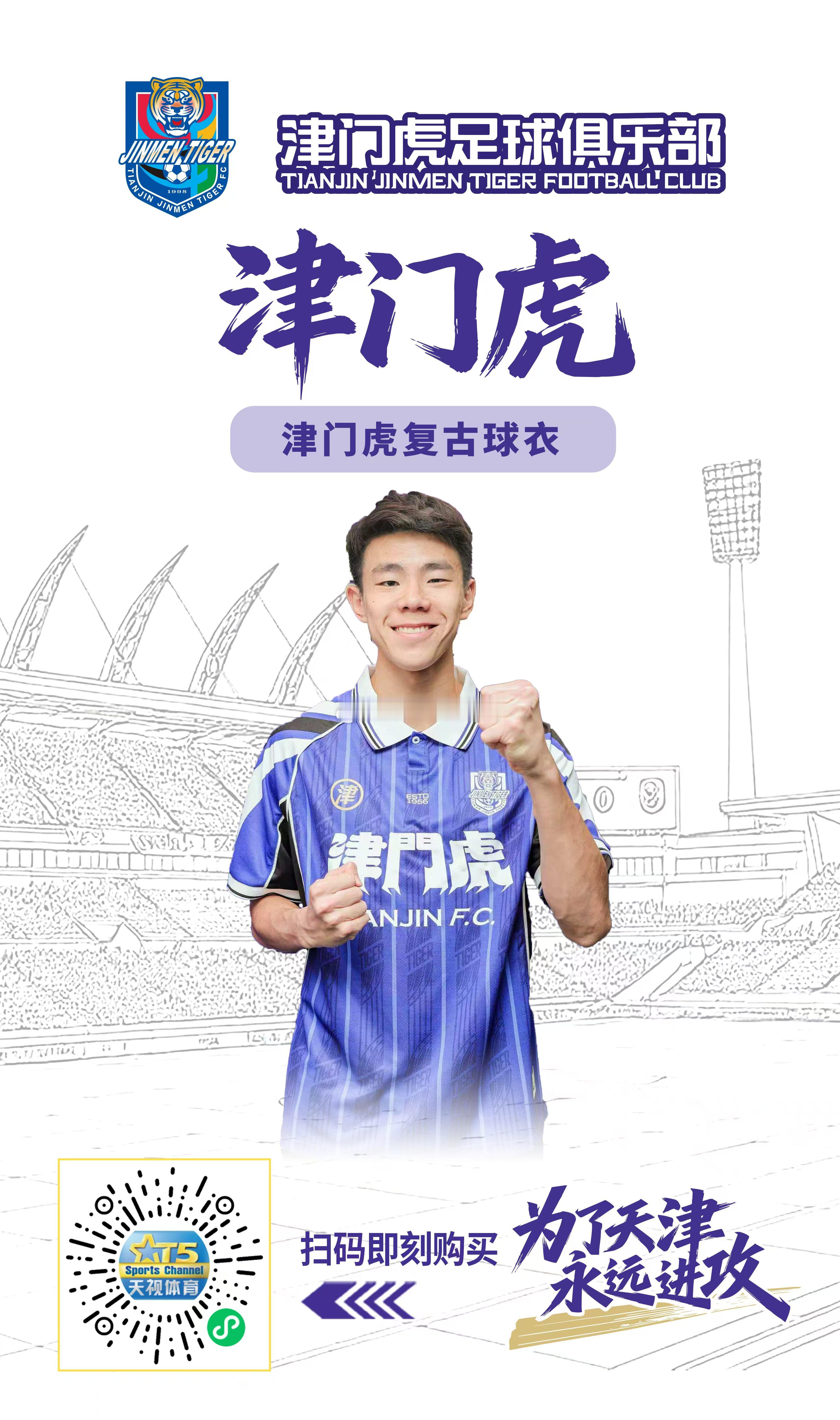【津门虎周边】津门虎复古款球迷球衣+拼接风格夹克4月12日(周日)上午十点天视体