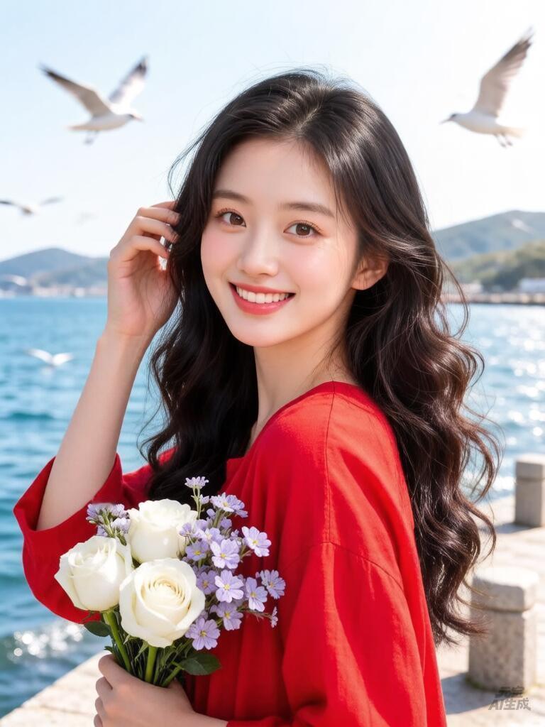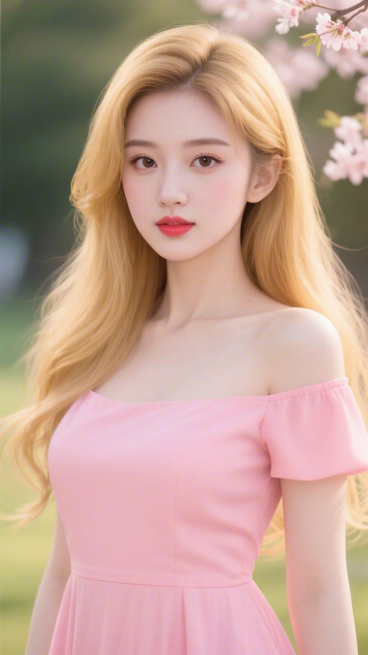 春日樱花下的甜美笑容,红白相间的连衣裙,少女心满满!🌸💕
